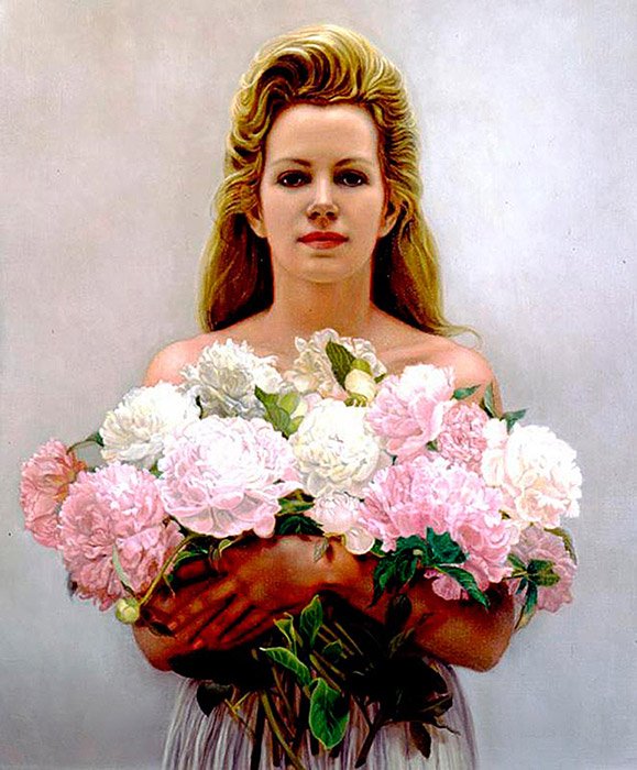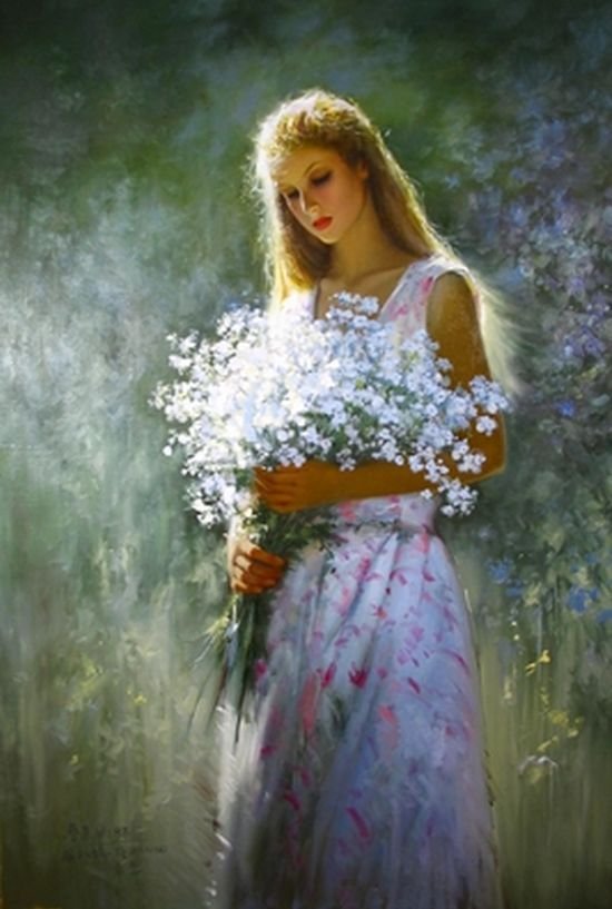 Девушка с букетом живопись