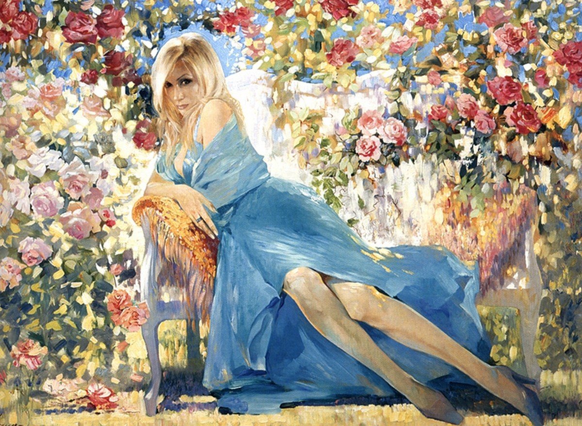 Художник Дима Дмитриев женщина и цветы