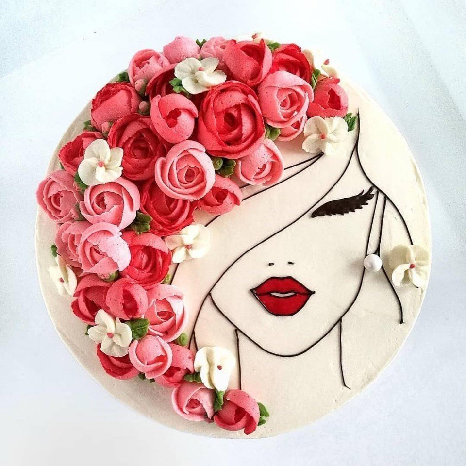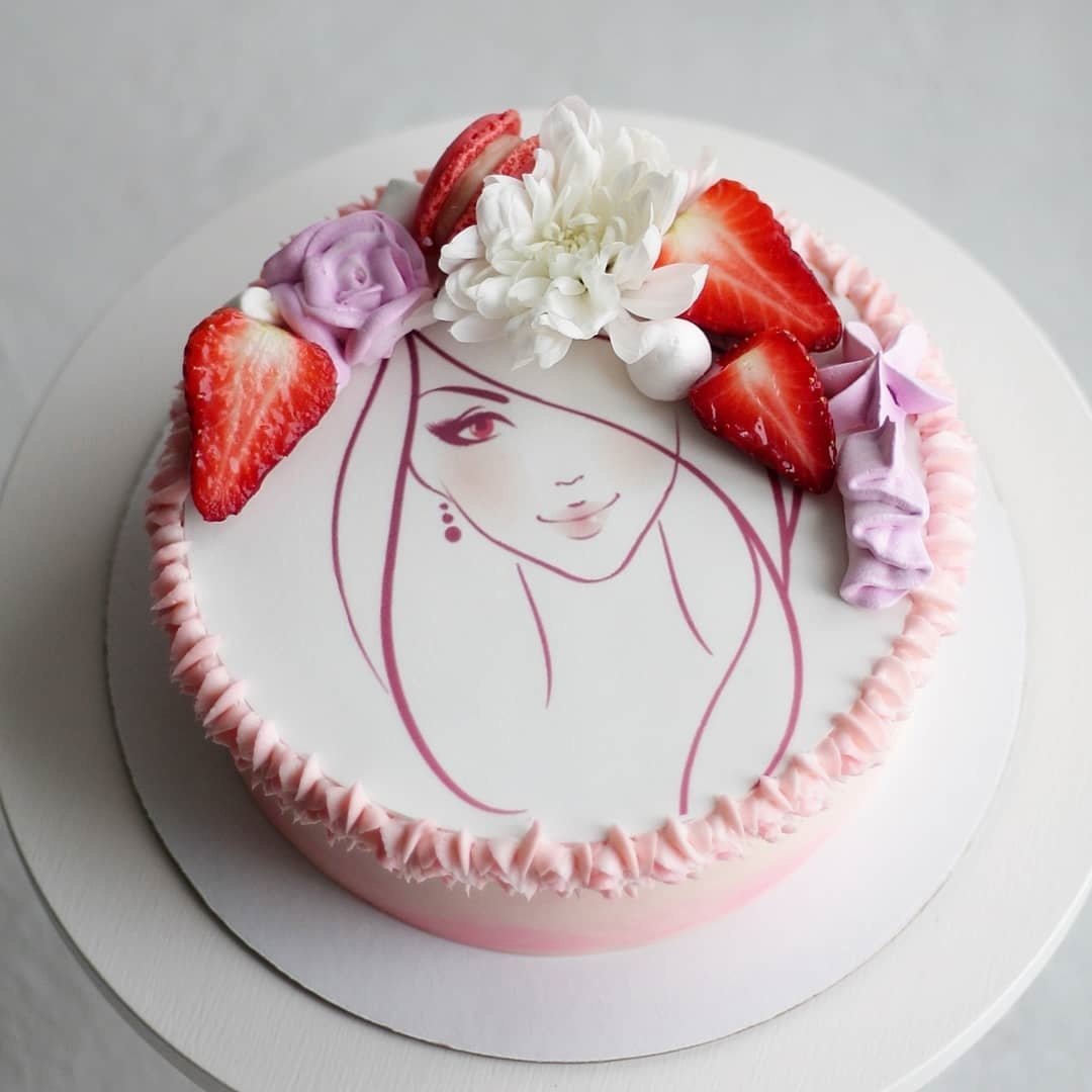 Тортик с нарисованной девушкой