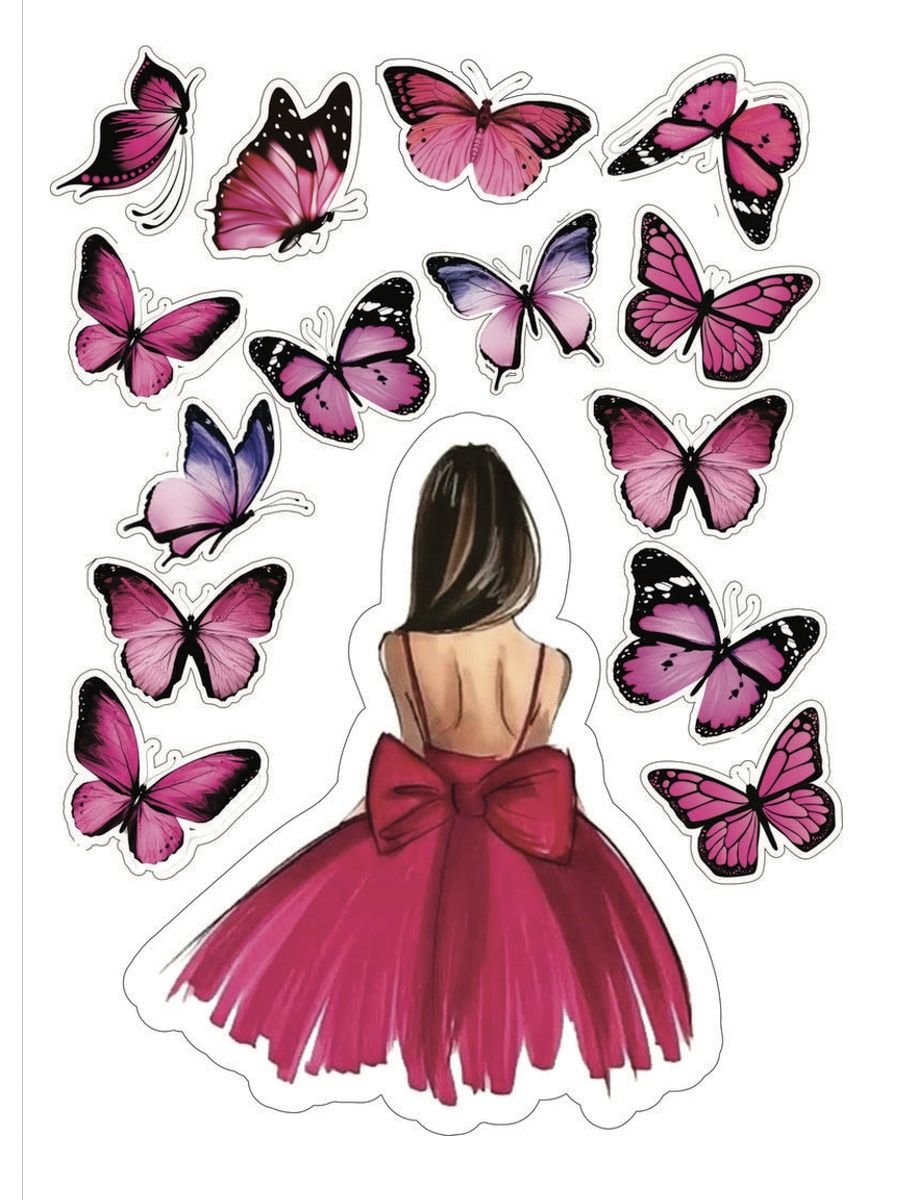 Девочка с бабочками для печати на вафельной бумаге