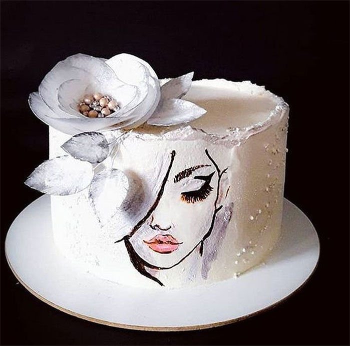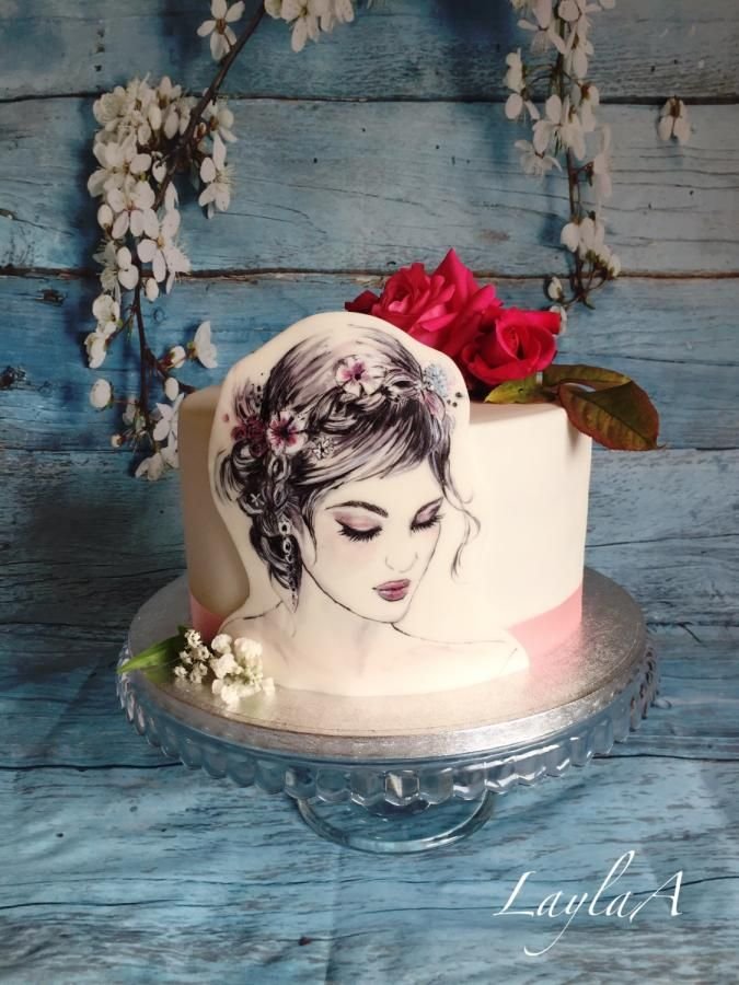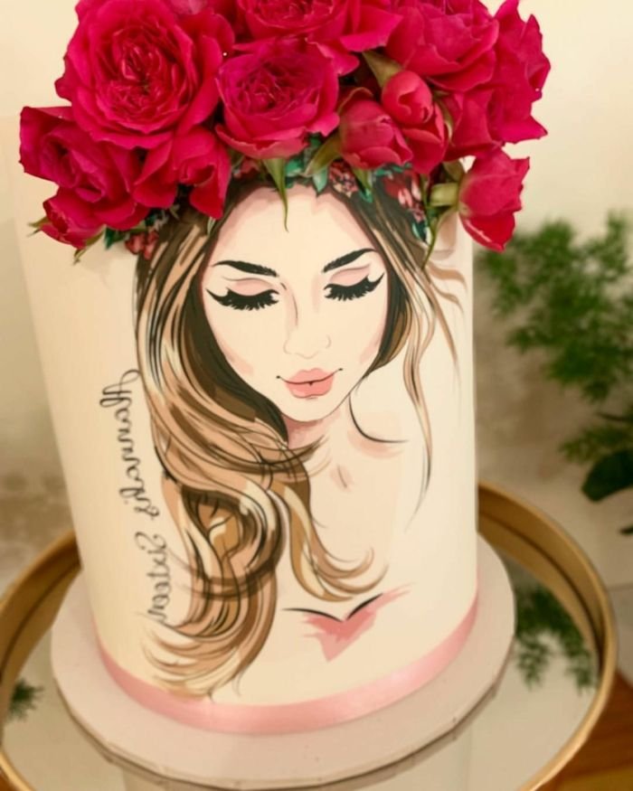 Торт с нарисованным лицом девушки