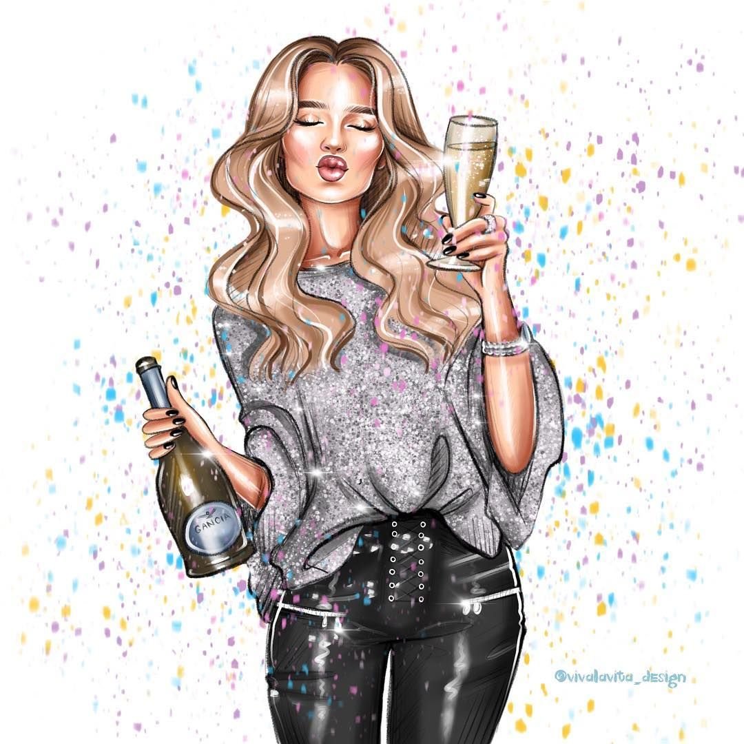 Рисованная девушка с бокалом