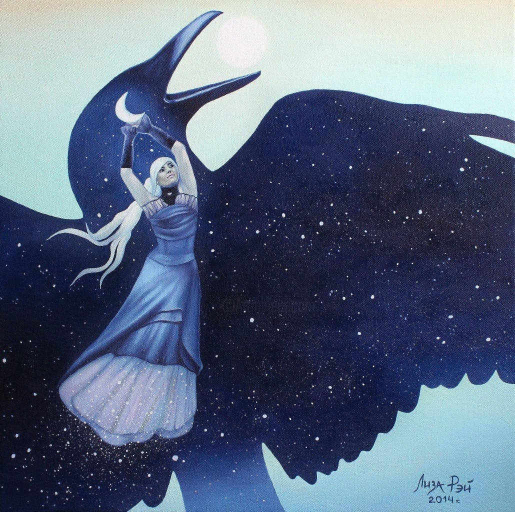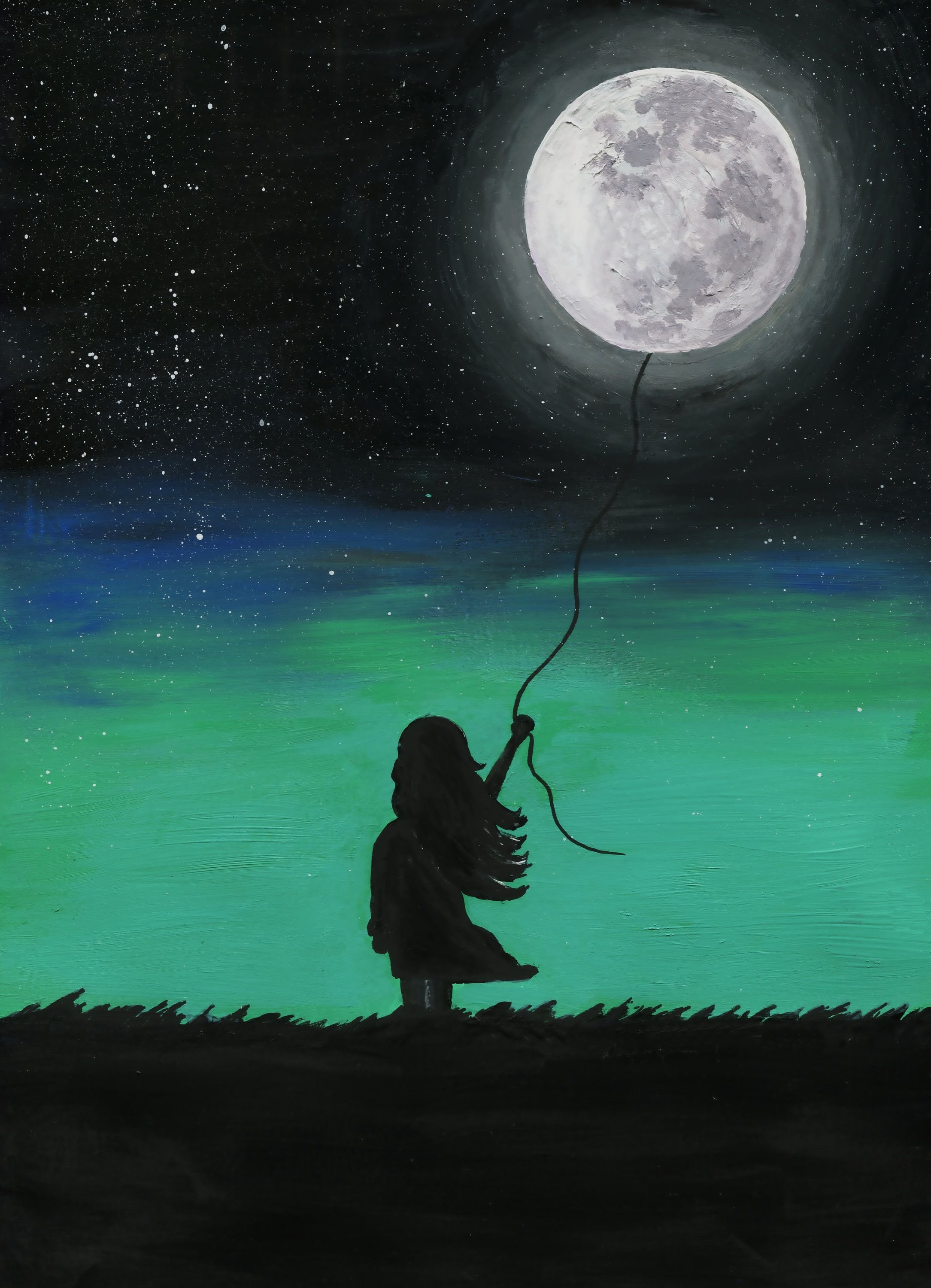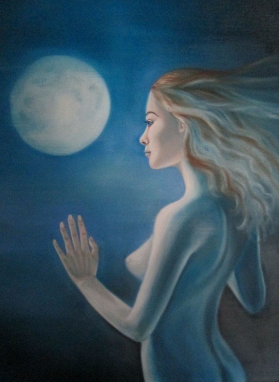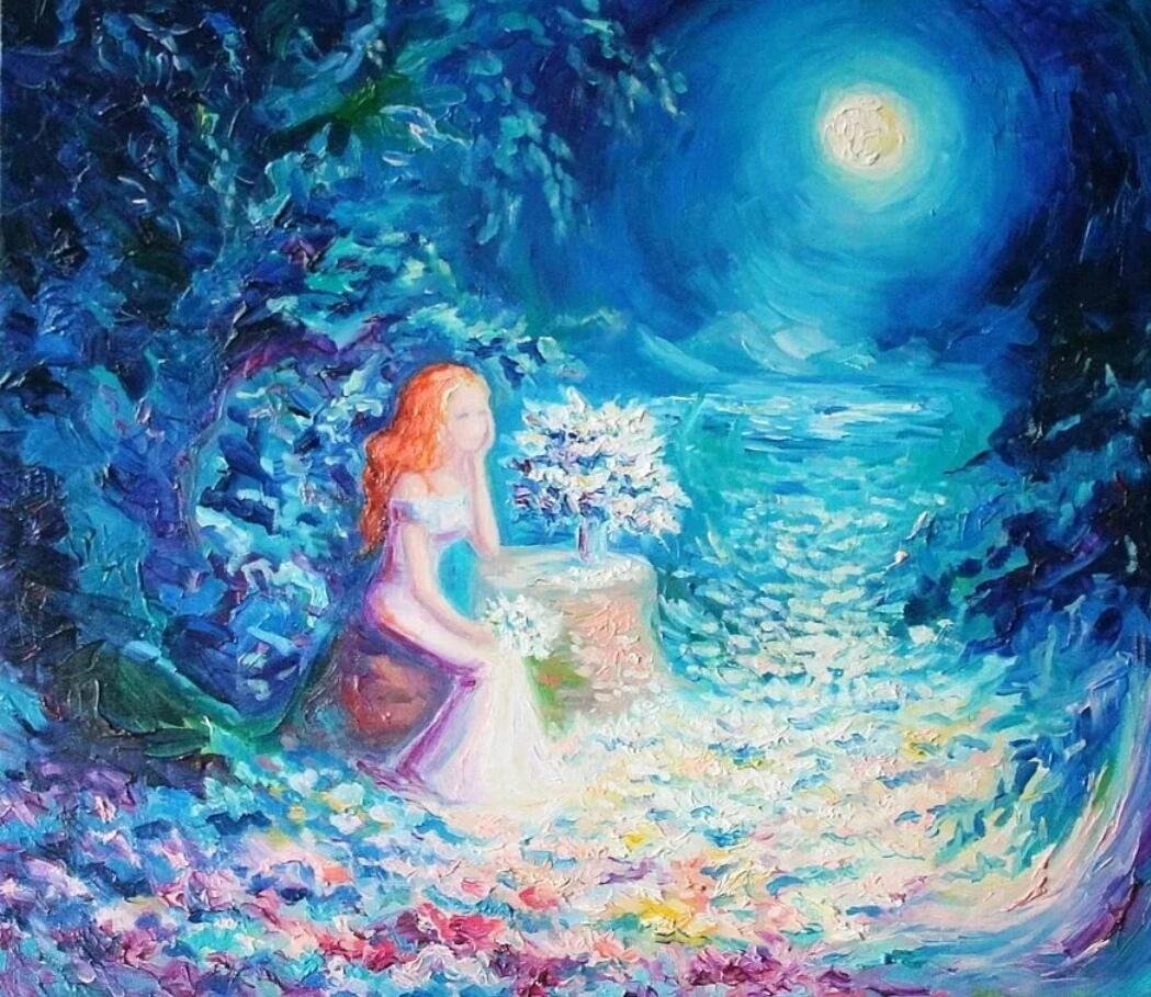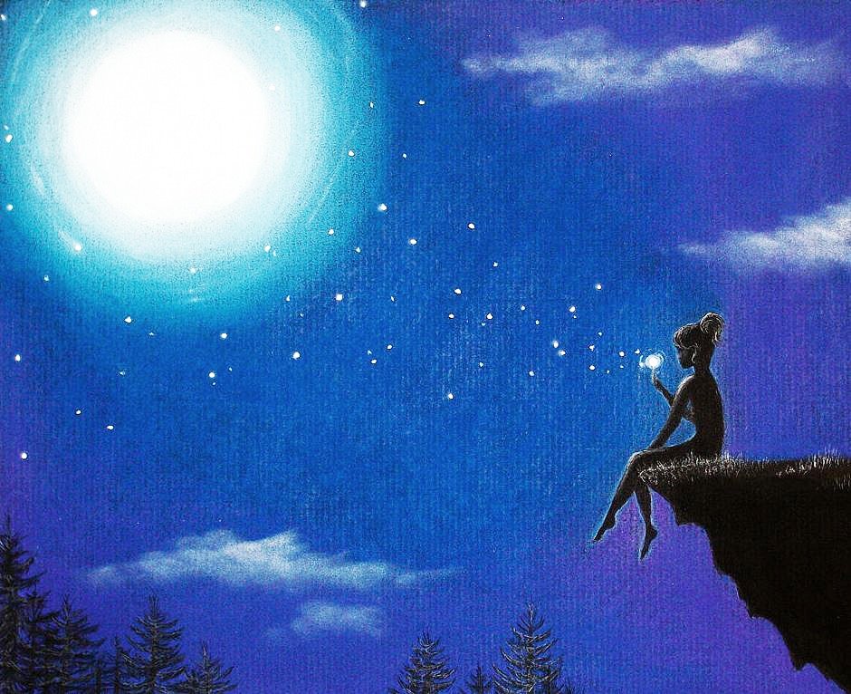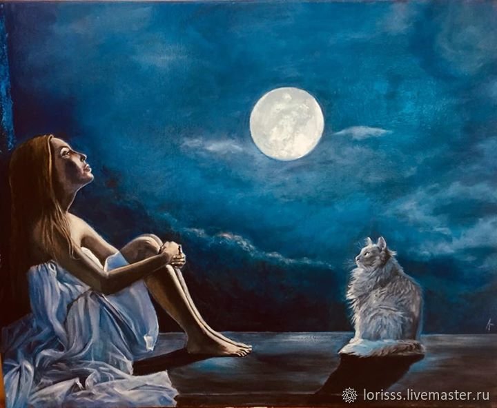 Девушка и Луна живопись
