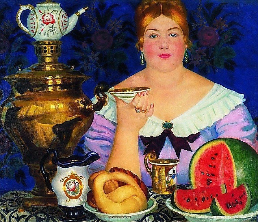 Б.М. Кустодиев, "Купчиха за чаем", 1918