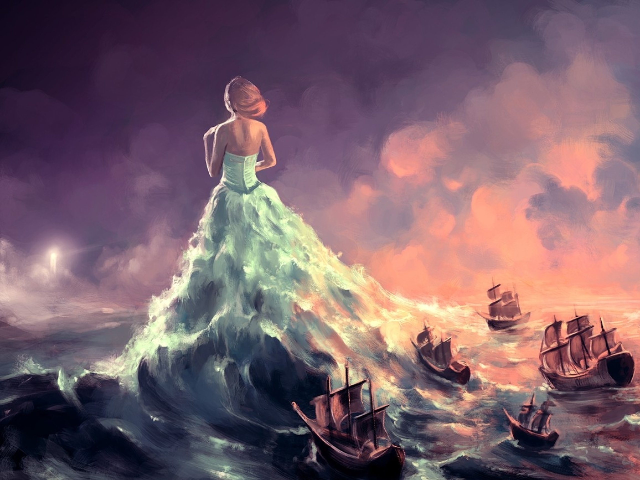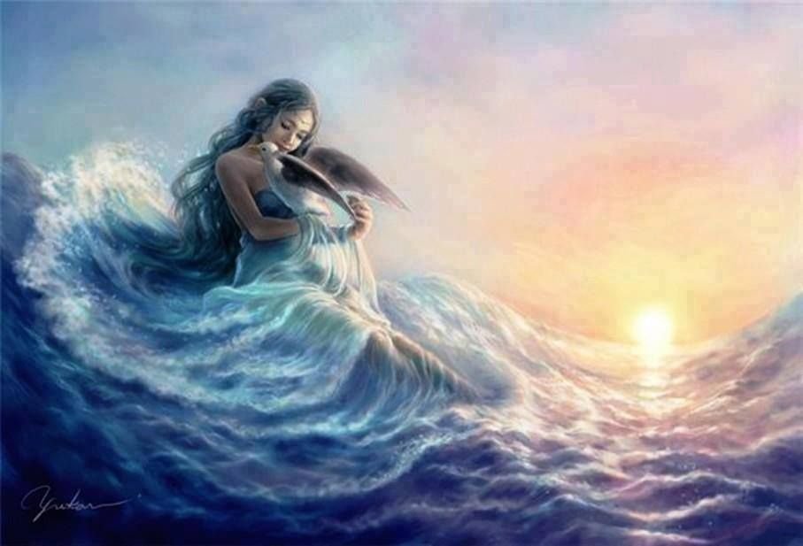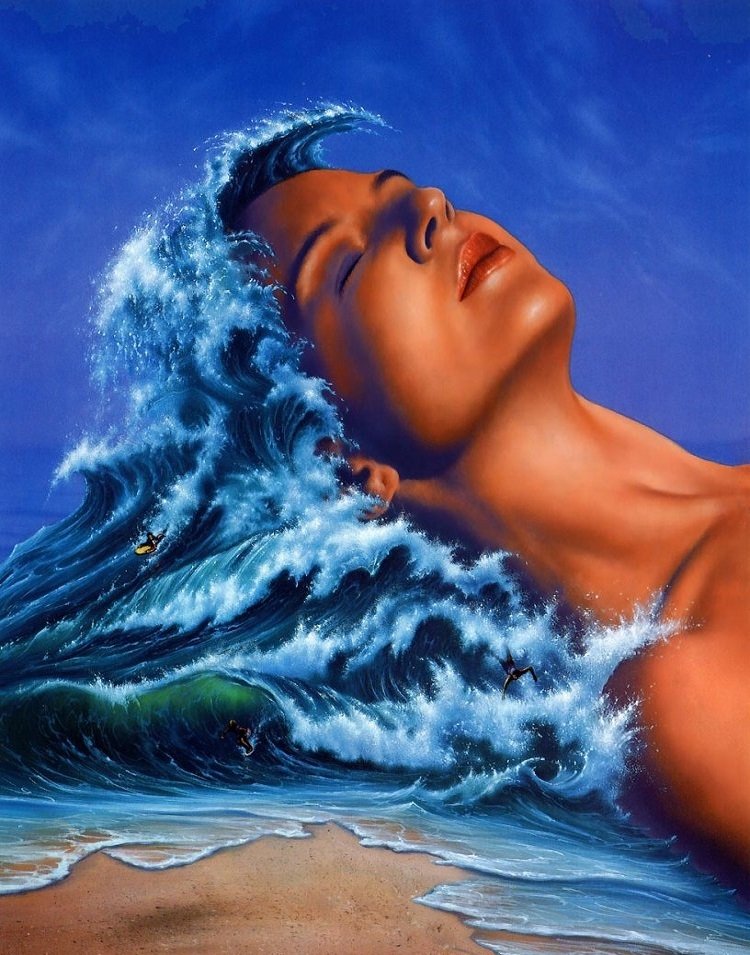 Картина маслом девушка в волнах