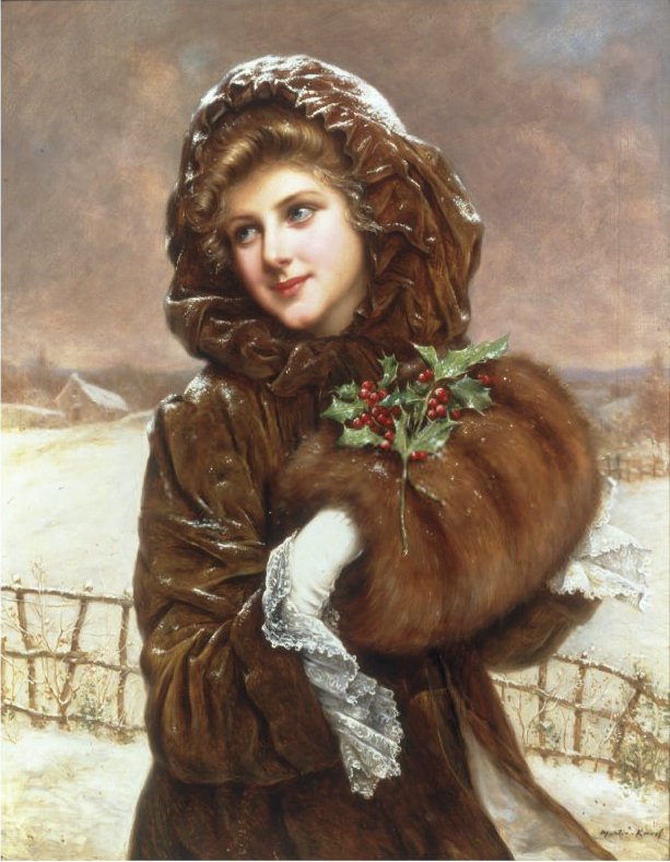 Женщина зимой живопись