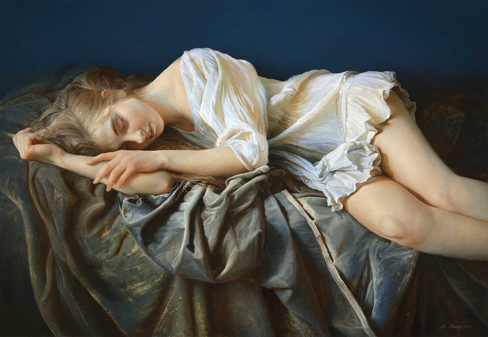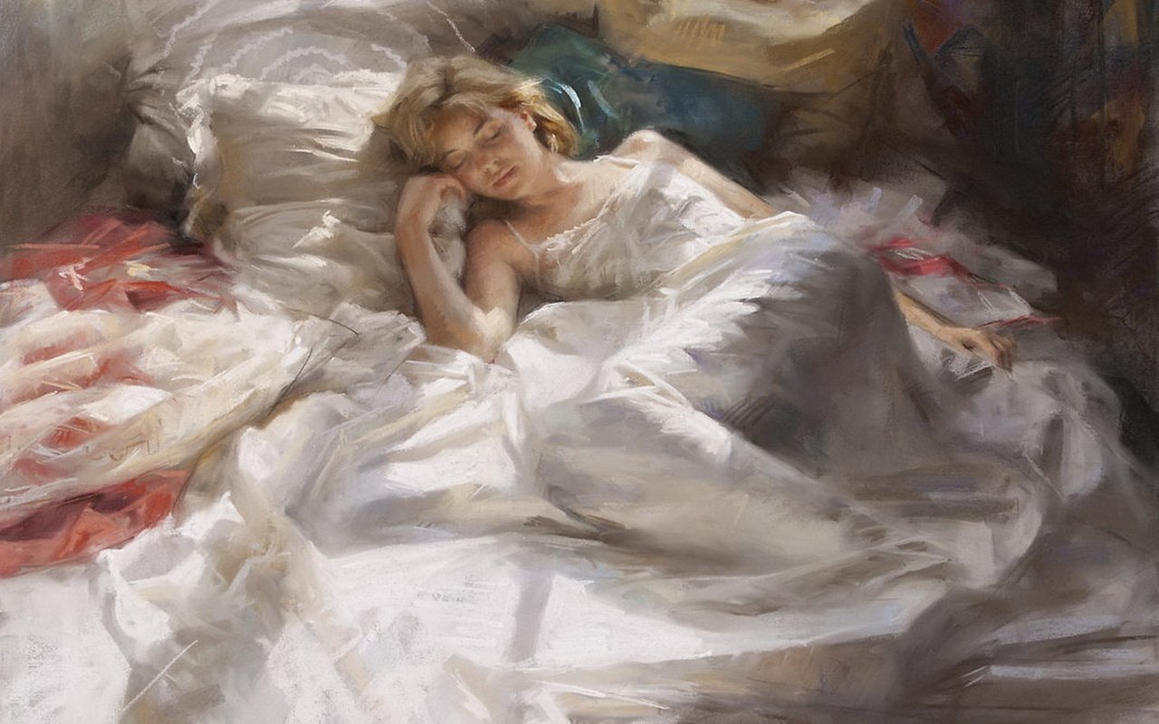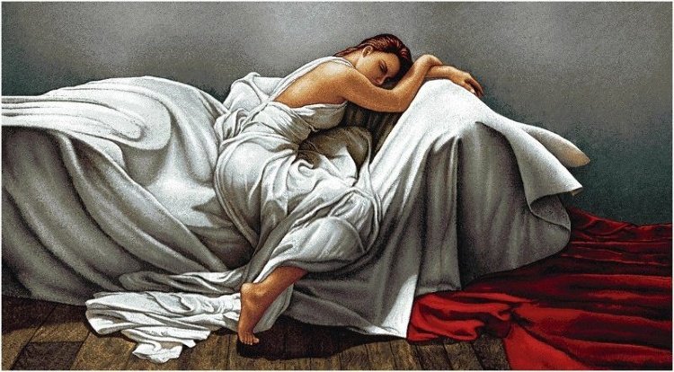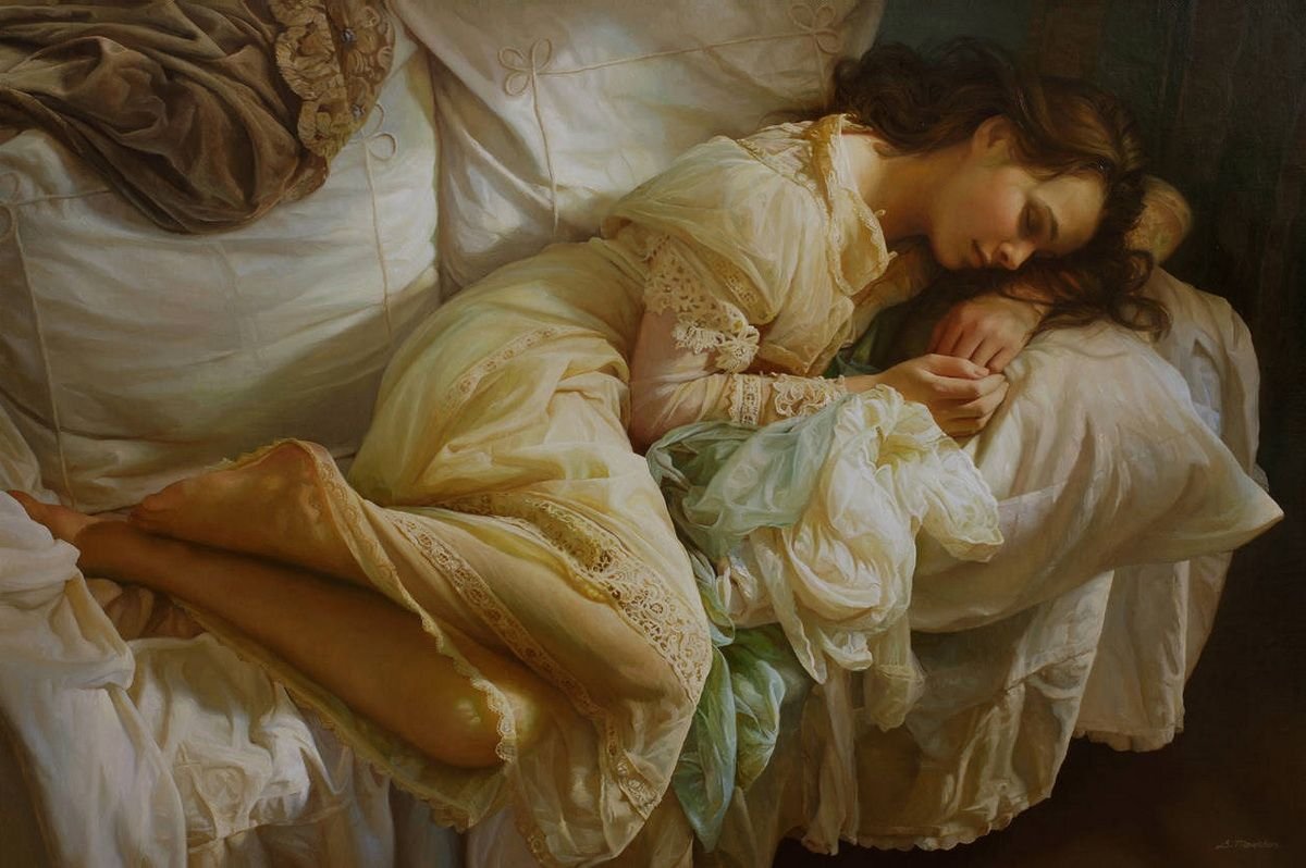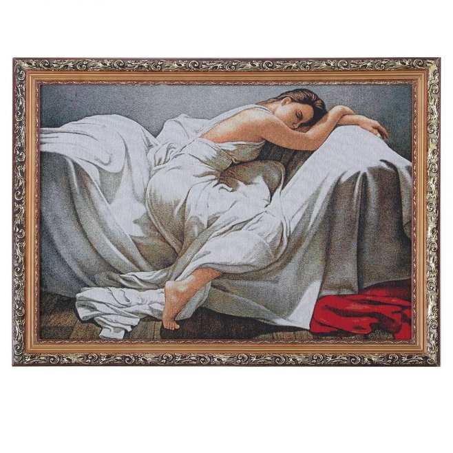 Картина "Спящая девушка в простыне" - это произведение искусства, которое восхищает своей красотой и нежностью. На полотне изображена молодая женщина, уютно устроившаяся на кровати в своей спальне. Её тело окутано белой простыней, создавая атмосферу умиротворения и покоя. Взгляд её закрыт, она глубоко уснула, отдавшись сновидениям. Художник сумел передать мягкость и неповторимую текстуру ткани, которая словно обнимает спящую девушку. Картина дарит ощущение уединения и расслабления, позволяя зрителю окунуться в мир гармонии и покоя. "Спящая девушка в простыне" - это произведение искусства, которое не оставит равнодушным любителей живописи и эстетического восприятия.