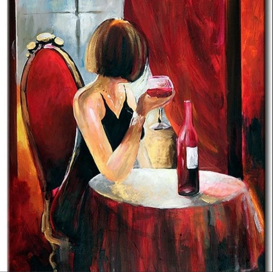 Картина маслом женщина вино