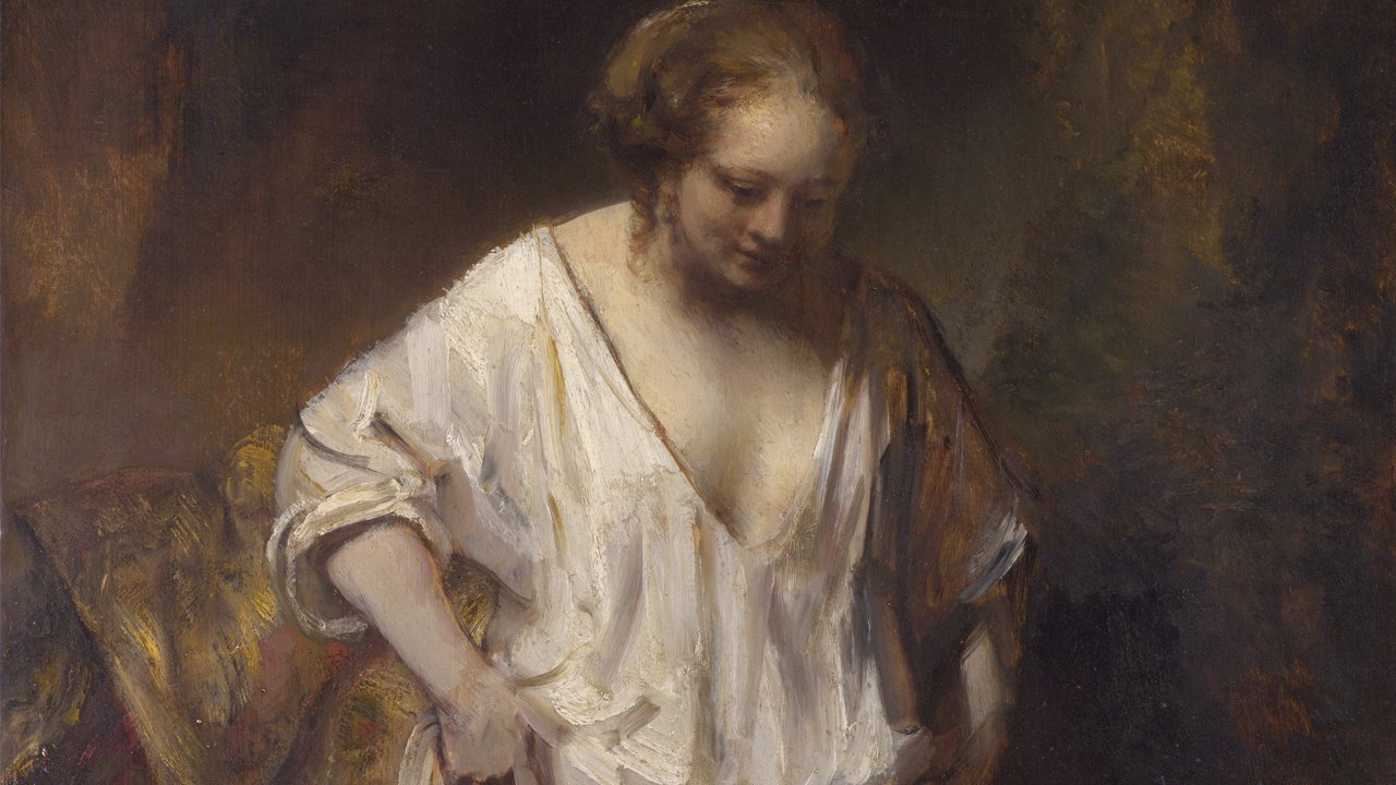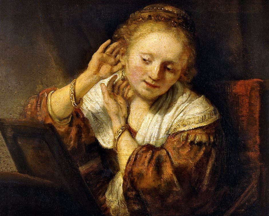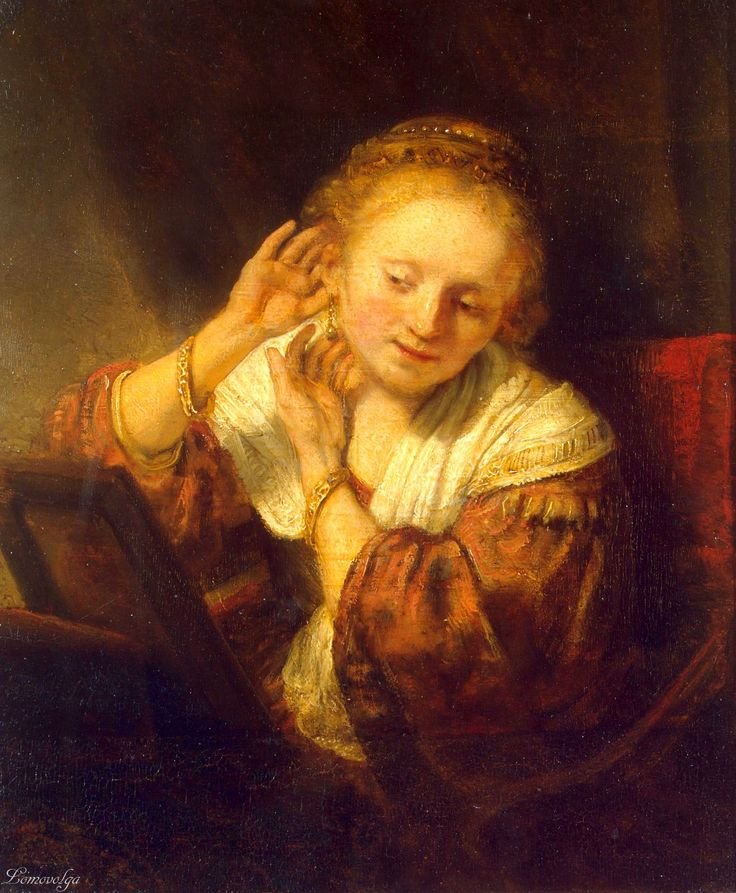 Рембрандт. Женщина, примеряющая серьги. 1654.