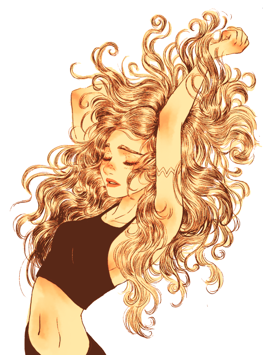 Девушка с развевающимися волосами рисунок