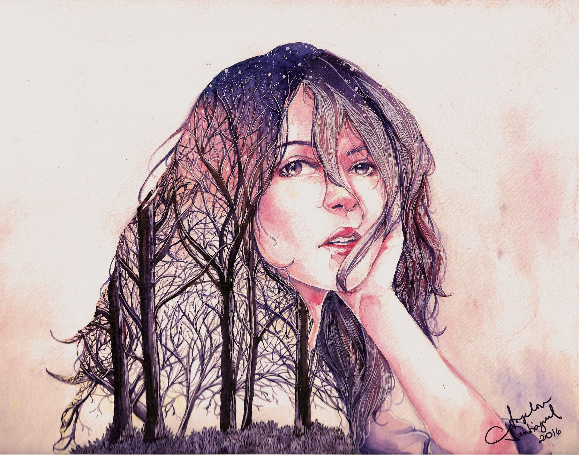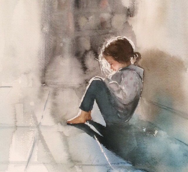 Грусть акварель
