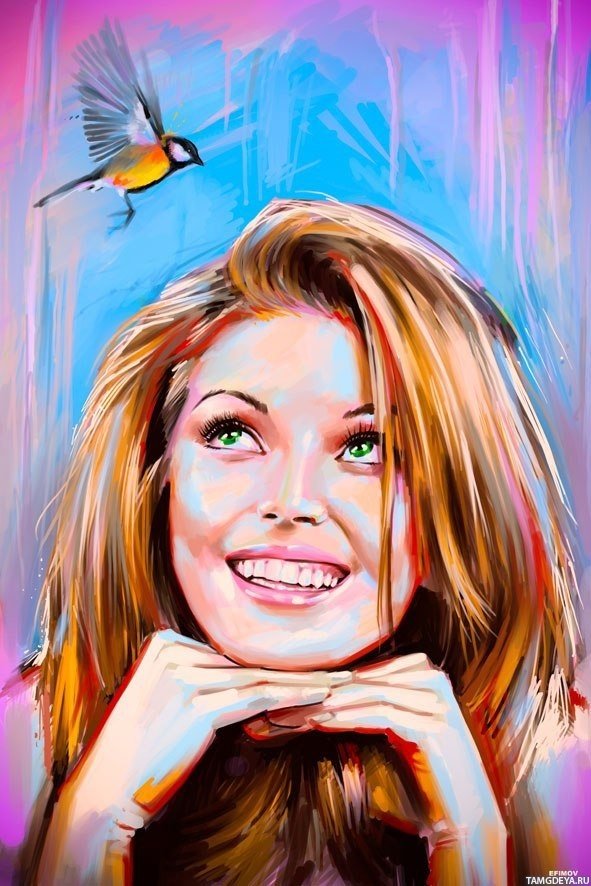 Нарисованная девушка улыбается