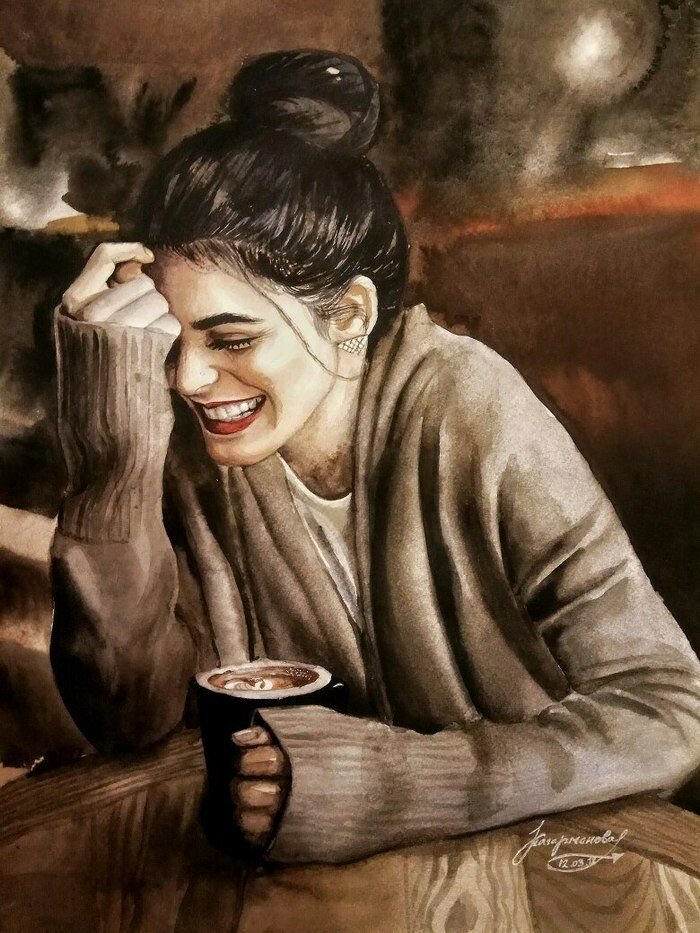 Женщина смеется живопись