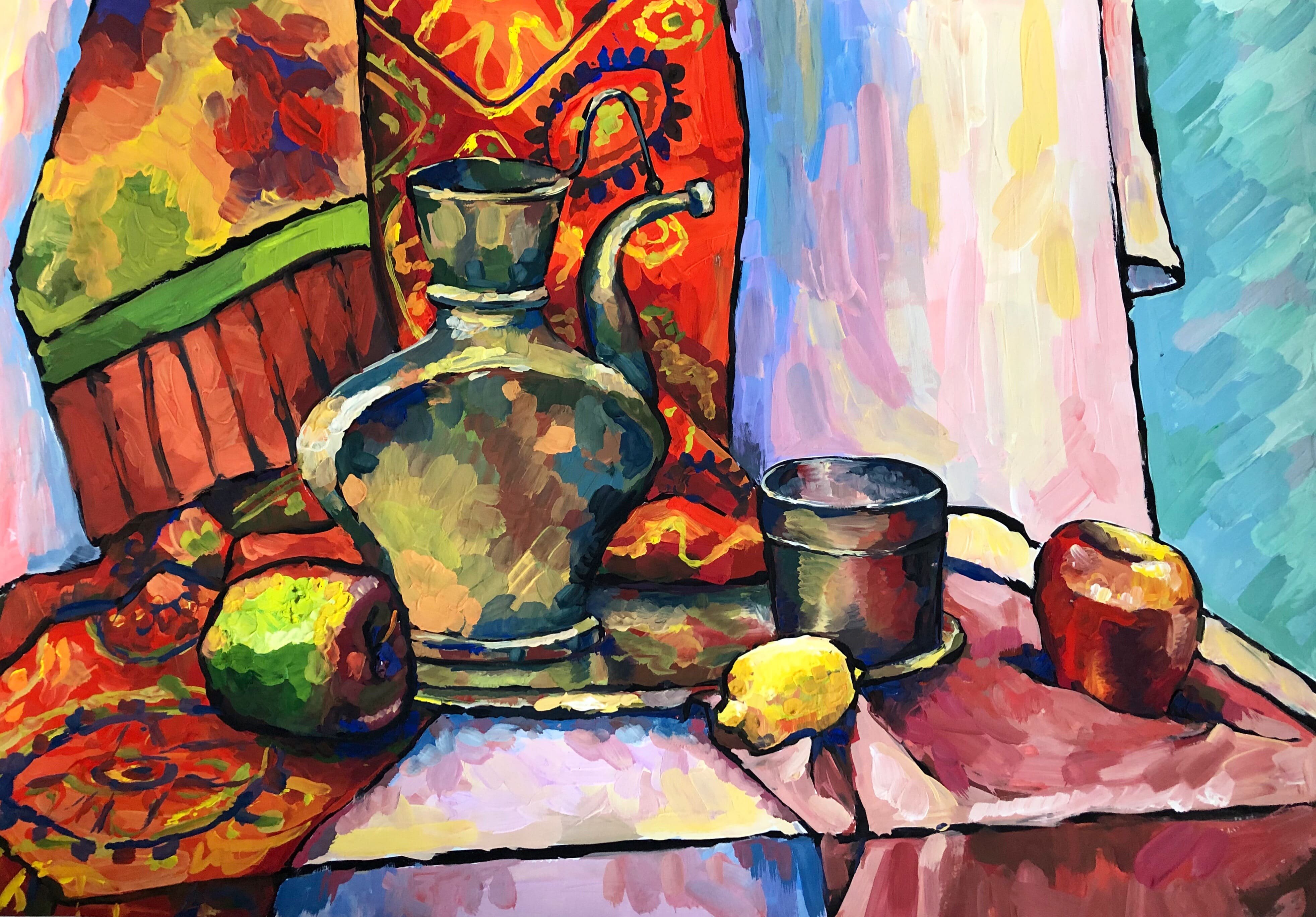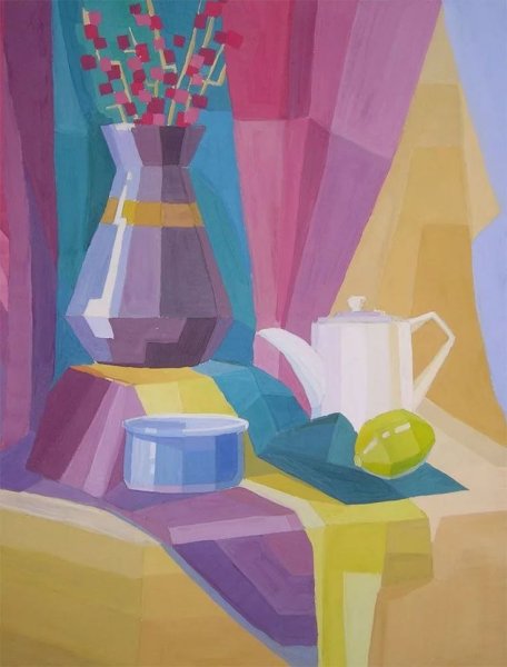 Декоративный натюрморт, выполненный гуашью, является идеальным элементом для создания уютной атмосферы в интерьере. Эта техника живописи позволяет передать на холсте изысканность и нежность цветов, причудливость форм и текстур объектов. Каждая кисточка превращается в магический инструмент, который способен оживить самые обычные предметы, добавить им изысканности и эстетического очарования. Натюрморт, выполненный гуашью, станет прекрасным акцентом в комнате, придаст ей уникальности и индивидуальности. Он будет радовать глаз своими красочными оттенками и деталями, а также перенесет нас в мир гармонии и красоты живописи.