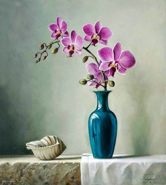 Натюрморт "ваза" - это изображение, которое передает красоту и грацию этого предмета. Вазы, как символ элегантности и изящества, являются неотъемлемой частью декора в любом интерьере. Натюрморты с вазами могут быть выполнены в различных стилях и техниках - от классического реализма до современной абстракции. Они позволяют передать игру света на поверхностях вазы, выразить ее форму и текстуру. Натюрморт "ваза" может быть как ярким и насыщенным, так и нежным и романтическим, в зависимости от выбранной цветовой гаммы и композиции. Такое изображение подходит для украшения жилых помещений, офисов, гостиниц и других пространств, придавая им особую атмосферу и стильность. Будь то реалистический портрет вазы или его фантастическая интерпретация, натюрморт "ваза" всегда будет привлекательным объектом визуального искусства.