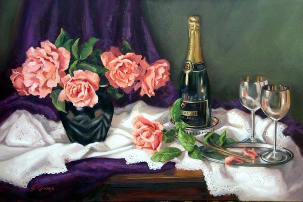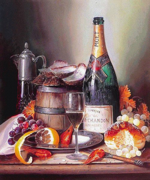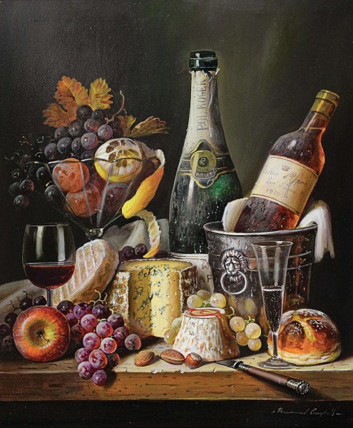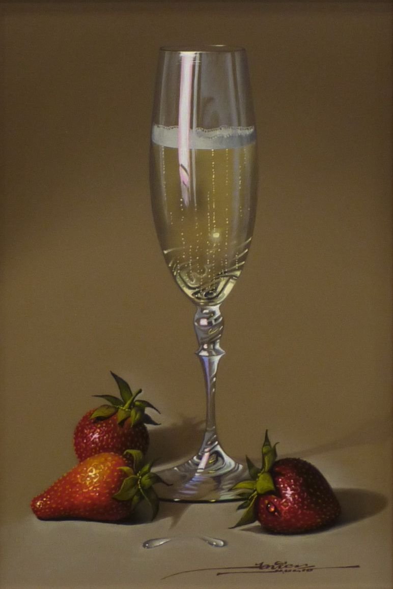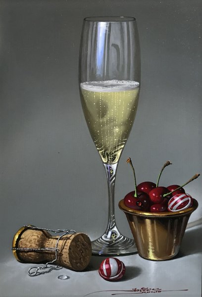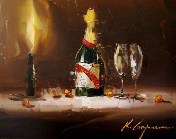 Натюрморт с бокалом шампанского - это произведение искусства, которое воплощает в себе изысканность и элегантность. В этой композиции бокал со сверкающим шампанским становится центральным объектом, привлекая внимание зрителя своей притягательной атмосферой праздника и праздничного настроения. Кристальное стекло бокала отражает свет, создавая игру теней и отблесков, что придает натюрморту дополнительную глубину и объем. В окружении ярких цветов или фруктов, данный натюрморт выглядит роскошно и привлекательно, вызывая желание оказаться в мире роскоши и изысканности. Это произведение искусства подходит для любого интерьера, создавая уют и атмосферу праздника в комнате.