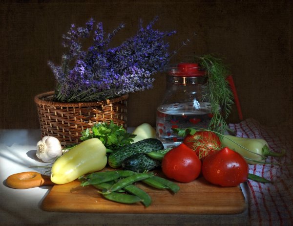 Наш натюрморт "Огурец и помидор" - это яркое и сочное изображение двух основных овощей, которые не только радуют глаз, но и позволяют ощутить вкус и свежесть сельской жизни. Огурец предстает перед нами своей хрупкостью и свежестью, с его зелеными полосками на тонкой кожуре, как будто только что сорванный с грядки. Помидор, напротив, поражает обилием красного цвета и сочным мякотью, отражая всю свою плодовитость и питательность. Вместе эти два овоща создают неповторимый контраст и привлекательность наших глаз, а также приносят радость и удовольствие в процессе их рассмотрения. Этот натюрморт станет ярким акцентом в интерьере вашей кухни или столовой, наполняя ее энергией и свежестью природы.