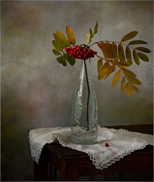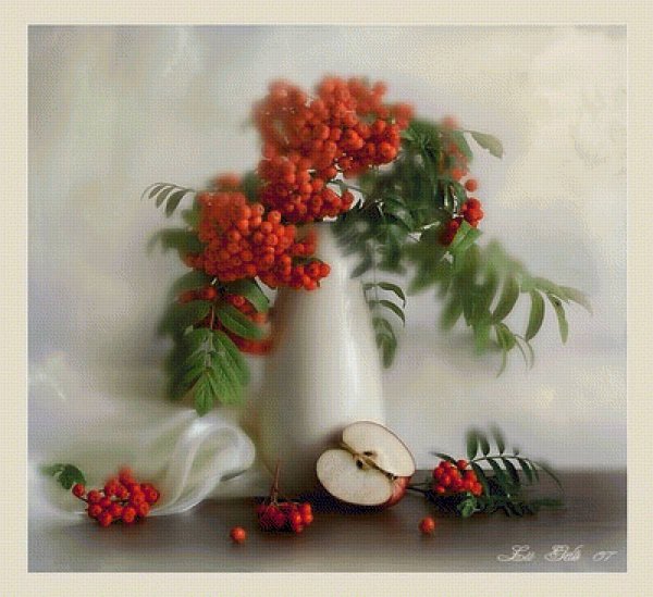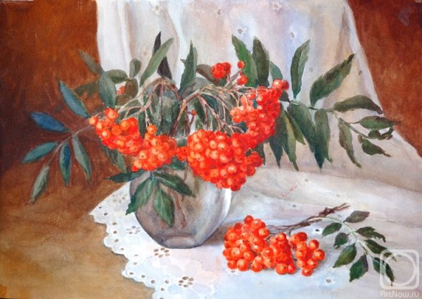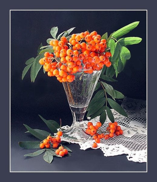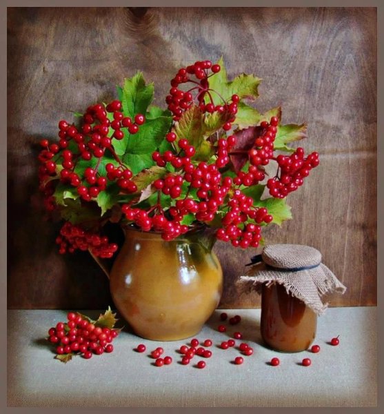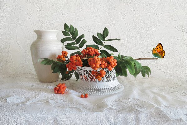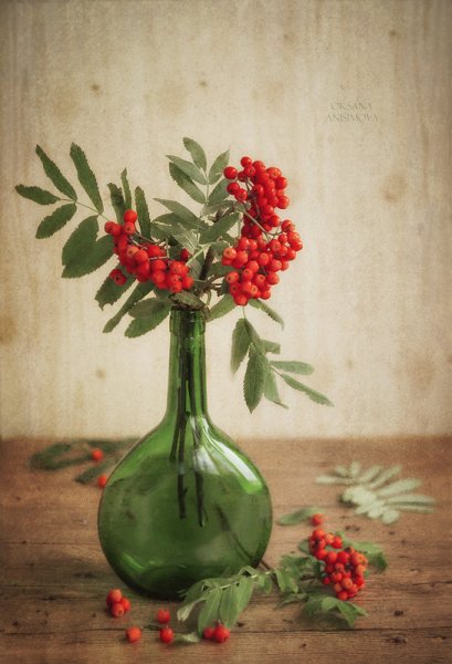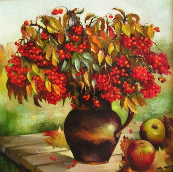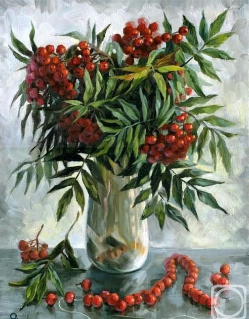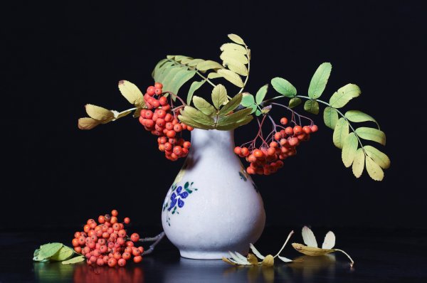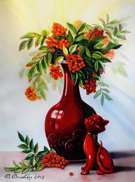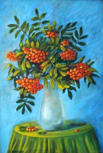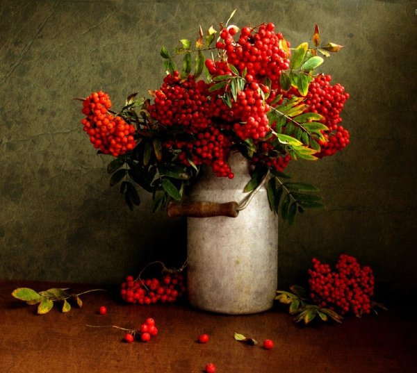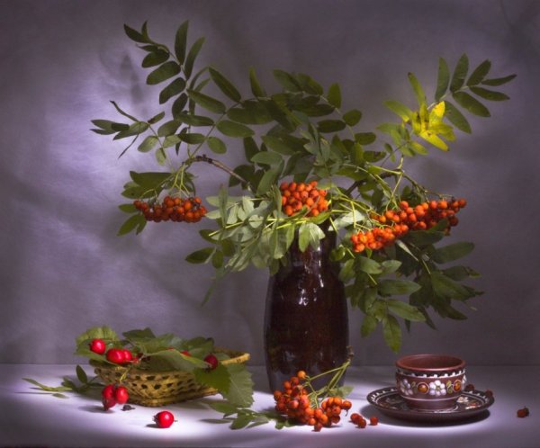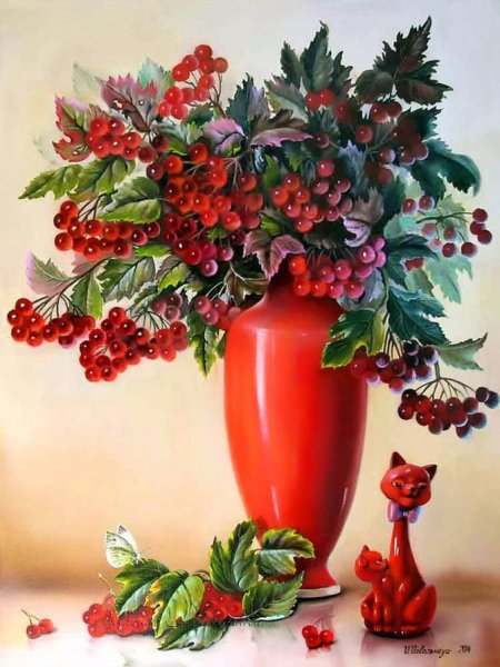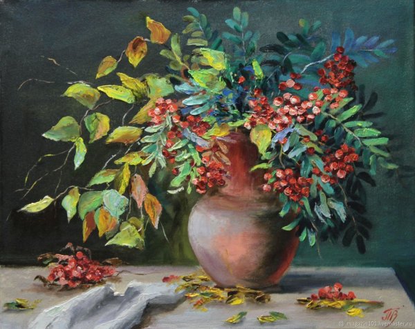 Ваза с рябиной натюрморт - это изысканное произведение искусства, которое привносит в интерьер свежесть и элегантность. Ваза, выполненная из высококачественного материала, имеет изящные линии и гладкую поверхность, что создает ощущение гармонии и утонченности. Рябина, являющаяся центральным элементом композиции, символизирует силу природы и воплощает надежду и новый рост. Комбинация ярких красных ягод рябины и зеленых листьев добавляет яркости и свежести в общий вид натюрморта. Ваза с рябиной натюрморт станет прекрасным акцентом в интерьере, придавая ему шарм и индивидуальность.