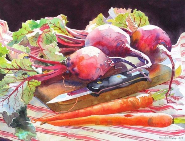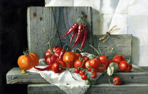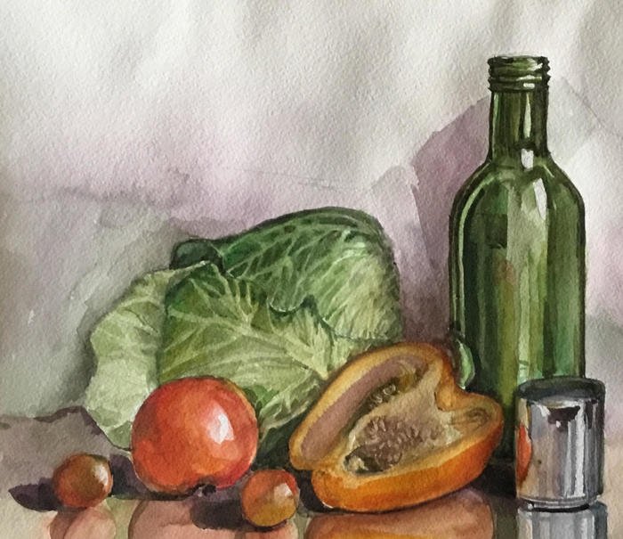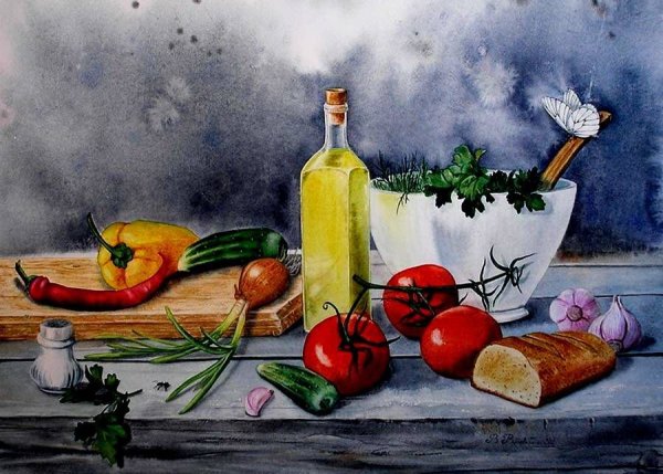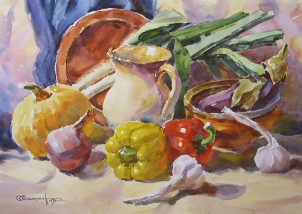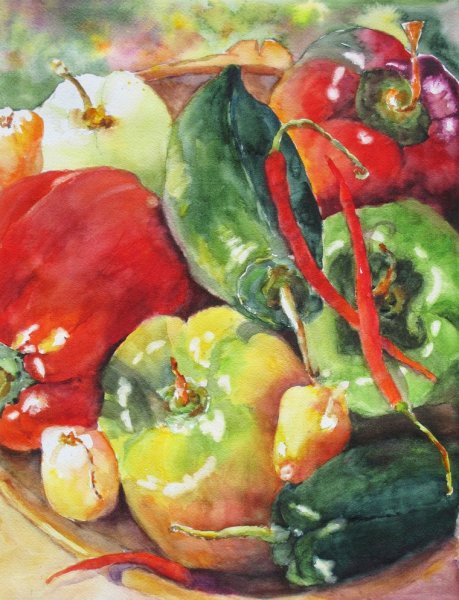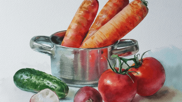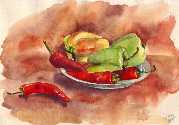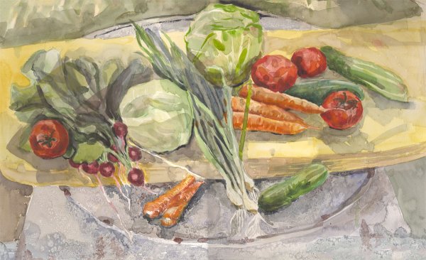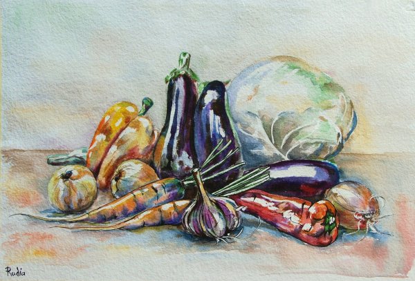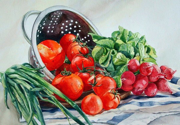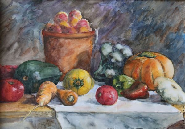 Акварель натюрморт с овощами - это прекрасное произведение искусства, которое захватывает взгляд своей яркостью и живописностью. Картина изображает разнообразные овощи, такие как сочные помидоры, сочные морковки, свежие огурцы и аппетитные перцы. Художник смело использует различные оттенки и тонкие переходы для создания реалистичности и объемности каждого овоща. Техника акварели позволяет передать нежность и прозрачность цветов, что придает произведению особую гармонию и эстетическое удовольствие. Натюрморт с овощами не только радует глаз своей красотой, но и вносит атмосферу свежести и здоровья в интерьер, даря ощущение радости и гармонии.