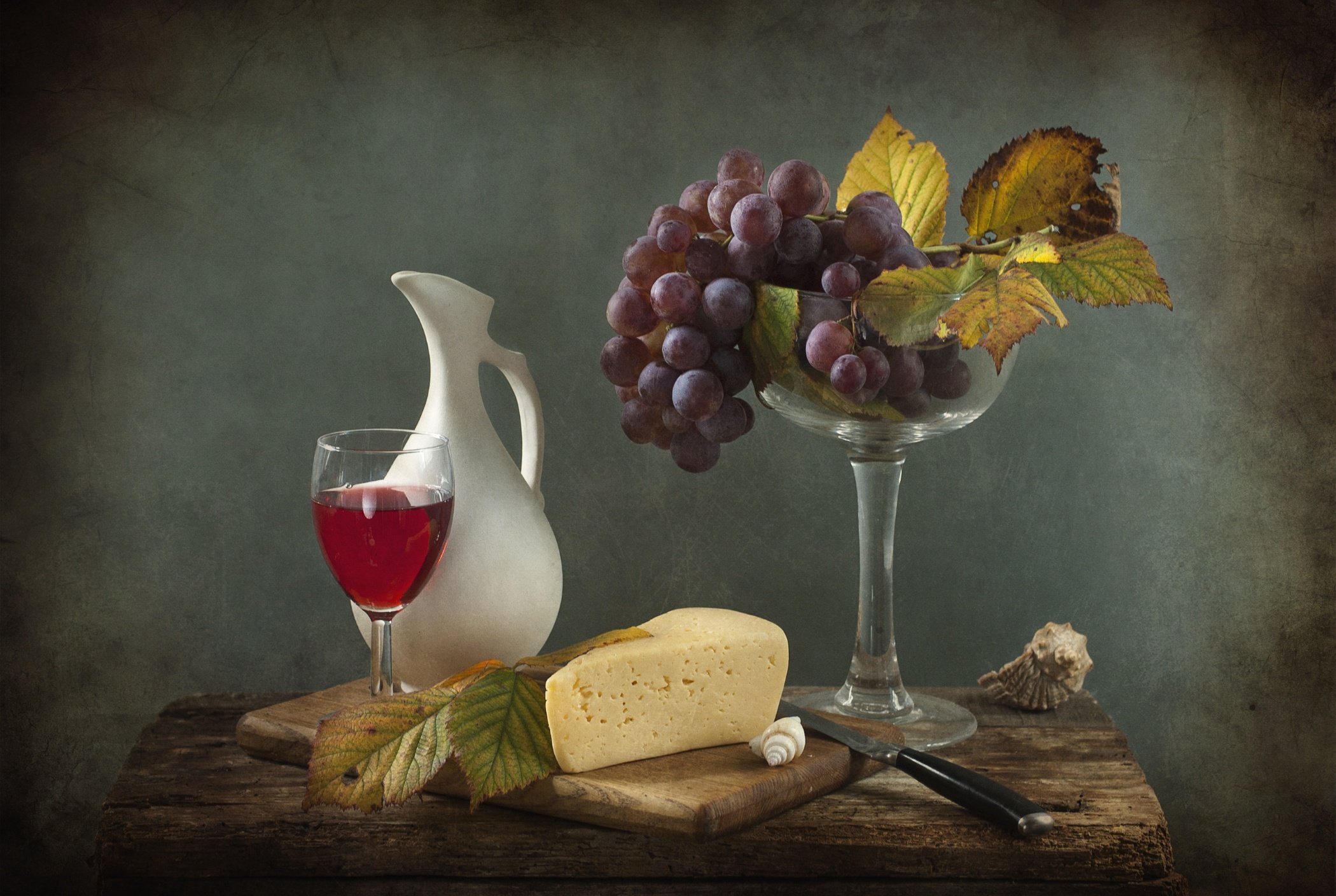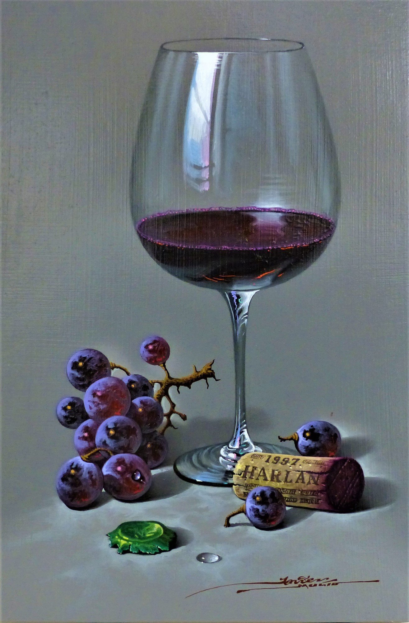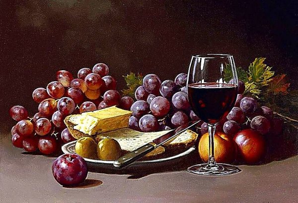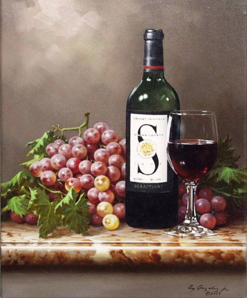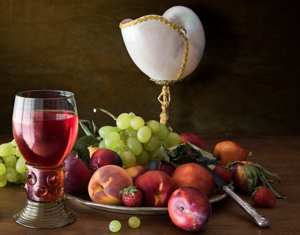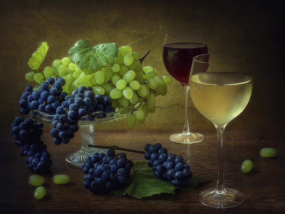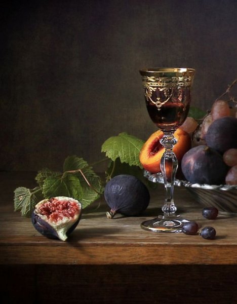 Великолепный натюрморт, на котором изображен бокал со спирально выдавленными узорами и аппетитные ветви винограда, является прекрасным произведением искусства. Нежные оттенки фиолетового и зеленого создают гармоничное сочетание цветов, придавая композиции живую энергию. Плавные линии и формы предметов делают натюрморт очень элегантным и изысканным. Бокал, наполненный вином, символизирует праздник, радость и отдых, а виноград добавляет нотку свежести и природной красоты. Это произведение искусства не только визуально привлекательно, но и вызывает в зрителе эмоции и настоящее наслаждение.
