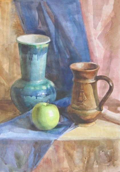 Натюрморт из трех предметов акварелью - это изящное и уникальное произведение искусства, которое привлекает внимание своей красотой и тонкостью. В этом натюрморте каждый предмет тщательно изображен с помощью акварельных красок, что создает ощущение реальности и глубины. Каждая кисточка пропитана мастерством и талантом художника, позволяя передать на бумаге все оттенки цветов и текстуры предметов. Это произведение искусства станет прекрасным украшением интерьера, добавляя в него нотку элегантности и изысканности. Разнообразие цветов и форм в этом натюрморте создает гармоничный образ, который запечатлевает мгновение и приносит радость зрителю. Оригинальность и экспрессия этого натюрморта позволяют воспринять его как произведение искусства, которое оставит неповторимые впечатления и вызовет восхищение у любителей живописи.