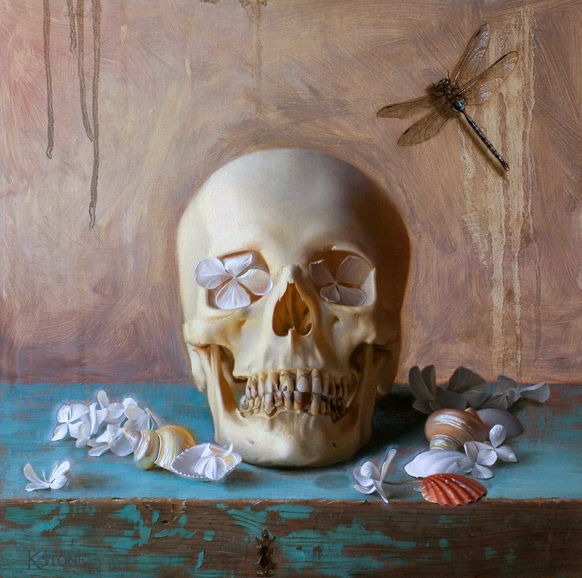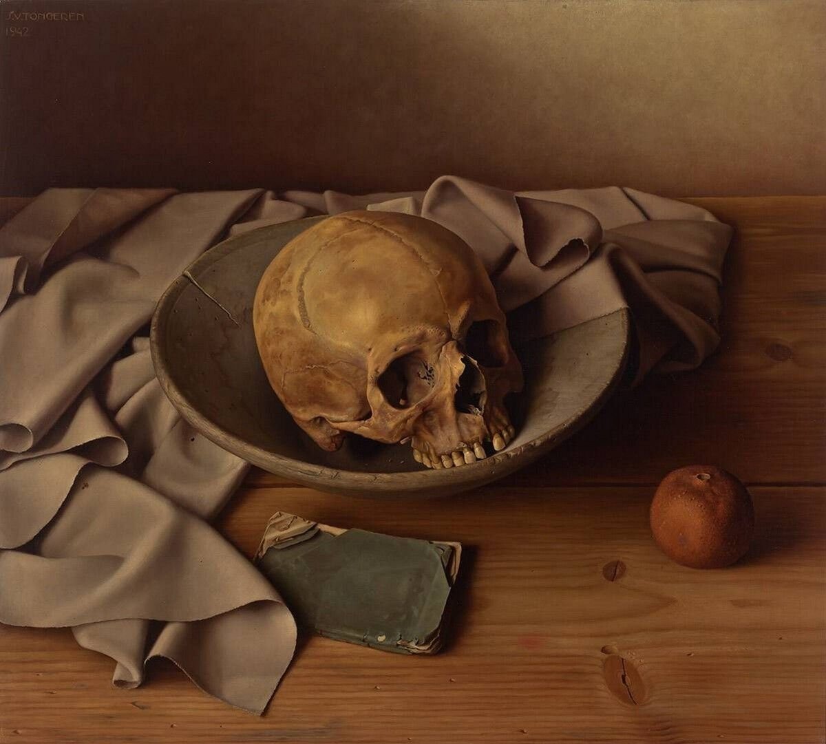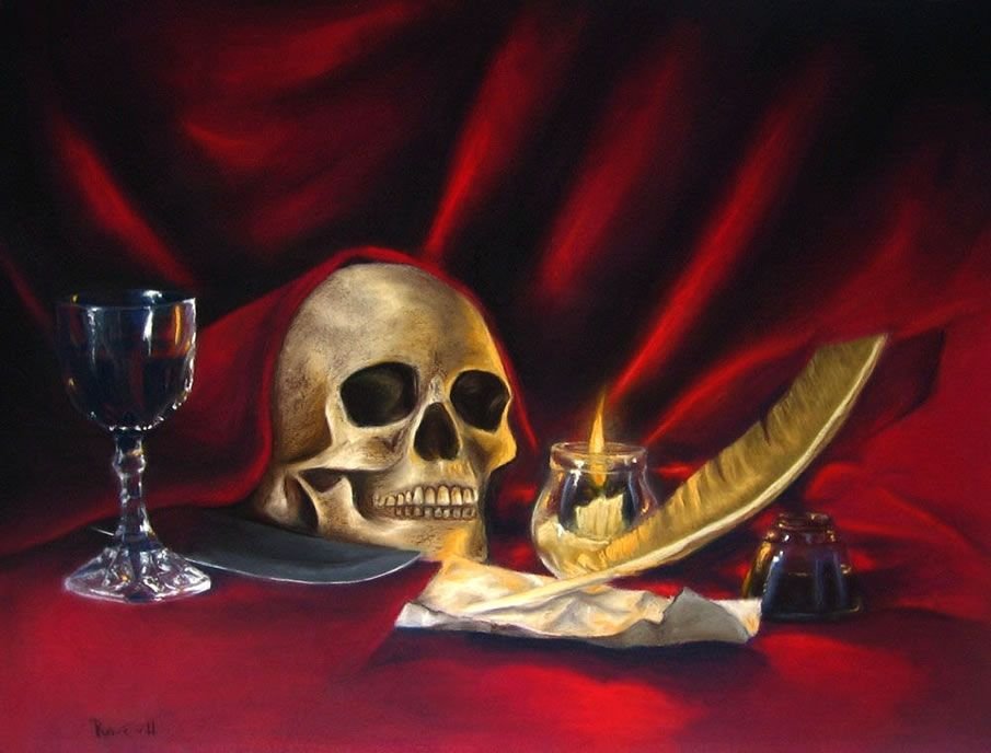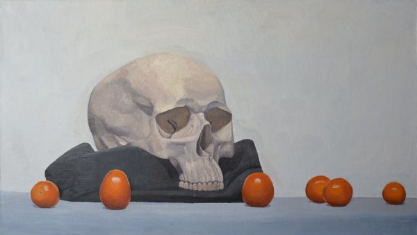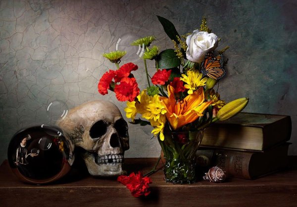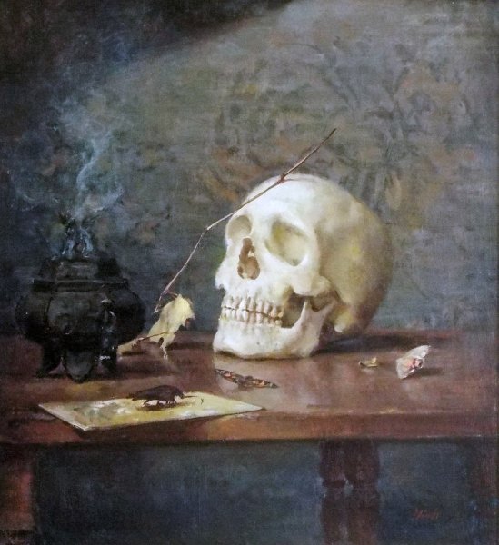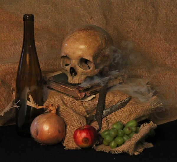Натюрморт с черепом - это произведение искусства, которое привлекает внимание своей загадочностью и символичностью. В этой композиции череп становится центральным элементом, окруженным различными предметами, создающими атмосферу мистики и тайны. Череп, как символ смерти и преходящего времени, напоминает нам о хрупкости жизни и неизбежности нашей смерти. Окружающие его объекты могут быть выбраны с особым значением, чтобы подчеркнуть определенные идеи или эмоции. Натюрморт с черепом позволяет зрителю задуматься о философских и глубоких вопросах, вызывая смешанные чувства удивления, тревоги и восхищения перед тайной человеческого бытия.