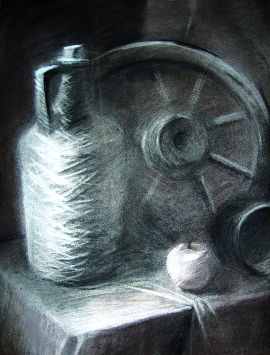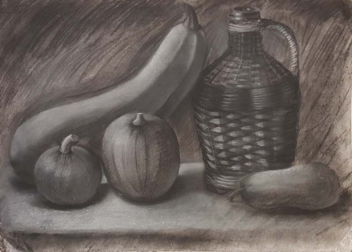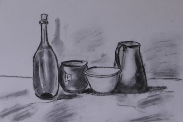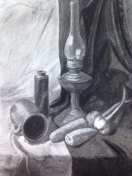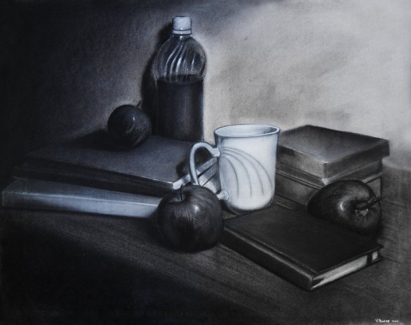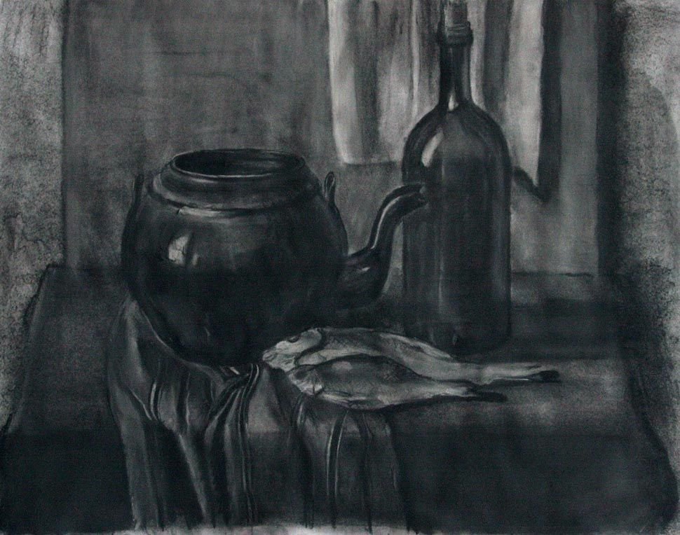 Натюрморт углем - это художественная композиция, созданная с использованием угля в качестве основного материала. Эта техника рисования позволяет передать глубину и объемность объектов, а также особую текстуру и насыщенность черноты. В натюрморте углем можно изобразить различные предметы, такие как фрукты, цветы, посуда или другие бытовые предметы. Они могут быть расположены на столе, полке или другой подходящей поверхности. Натюрморт углем имеет свою особую привлекательность и эстетическое значение, которое может дополнительно подчеркнуться правильным выбором света и тени. Это искусство, которое способно захватить взгляд зрителя и передать атмосферу таинственности и глубины.