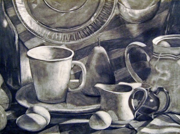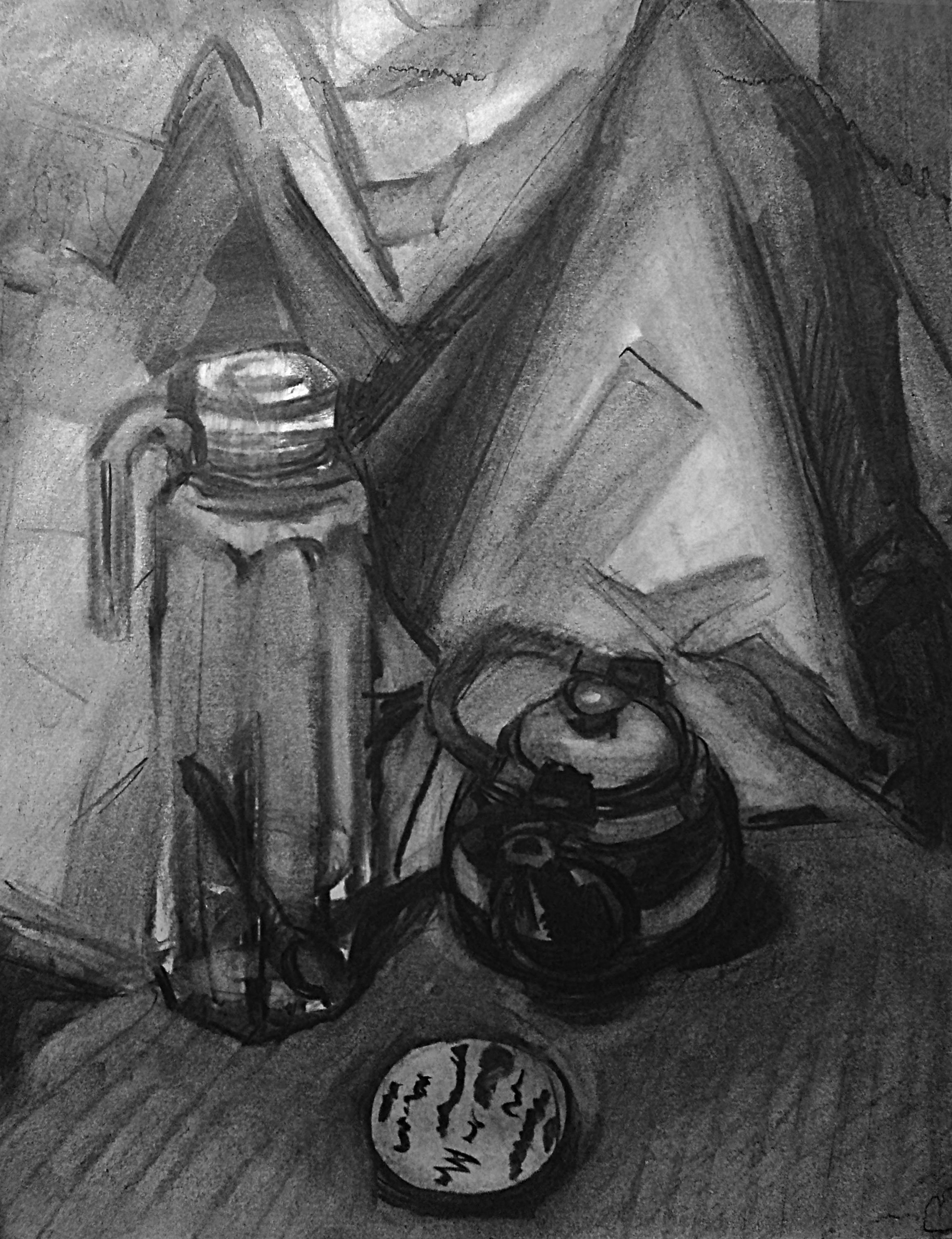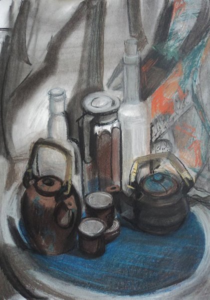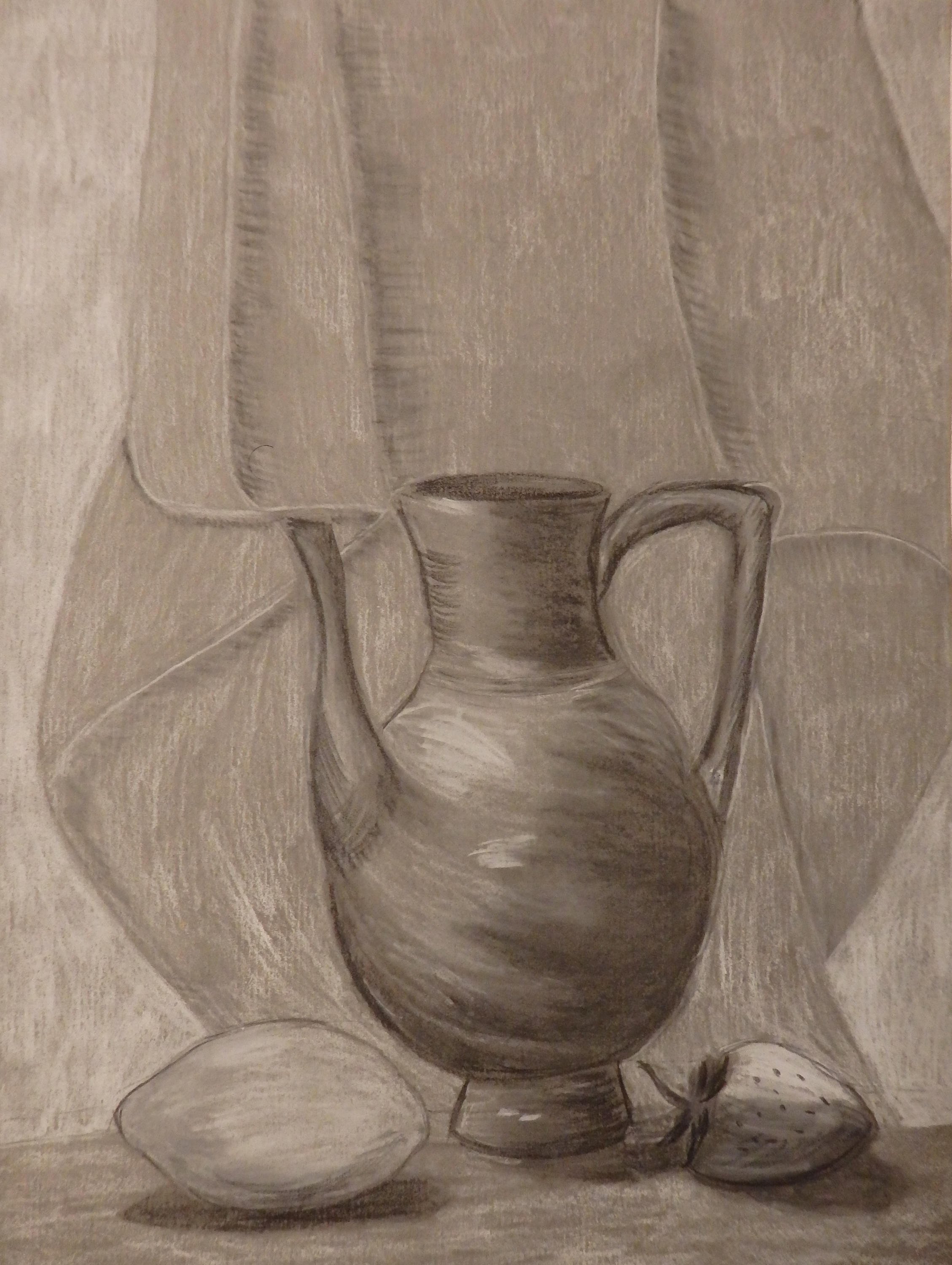 Натюрморт углем - это художественная композиция, созданная с использованием угля в качестве основного материала. Эта техника рисования позволяет передать глубину и объемность объектов, а также особую текстуру и насыщенность черноты. В натюрморте углем можно изобразить различные предметы, такие как фрукты, цветы, посуда или другие бытовые предметы. Они могут быть расположены на столе, полке или другой подходящей поверхности. Натюрморт углем имеет свою особую привлекательность и эстетическое значение, которое может дополнительно подчеркнуться правильным выбором света и тени. Это искусство, которое способно захватить взгляд зрителя и передать атмосферу таинственности и глубины.