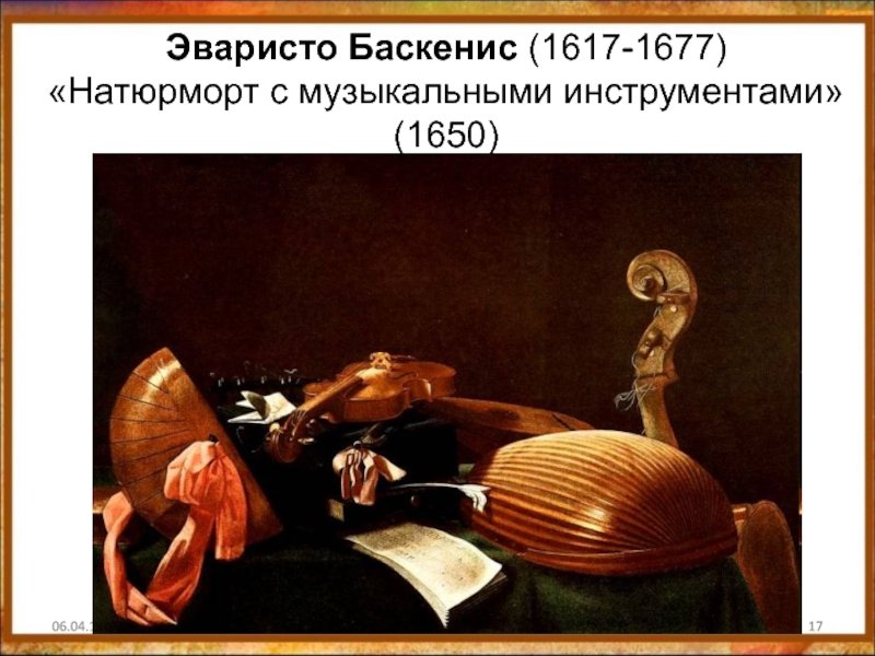 Натюрморт с музыкальными инструментами Эваристо Баскенис - это произведение искусства, которое олицетворяет величие и красоту музыки. В этом натюрморте представлены различные музыкальные инструменты, такие как скрипка, флейта, гитара и труба, каждый из которых имеет свой уникальный звук и характер. Художник умело передает текстуру и оттенки этих инструментов, создавая чувство реальности и живости. Вместе с тем, яркие цвета и динамичные композиции вызывают чувство энергии и страсти, связанные с музыкой. Натюрморт с музыкальными инструментами Эваристо Баскенис позволяет нам насладиться красотой музыки через взгляд художника.