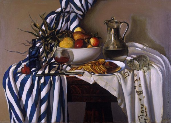 Натюрморт с драпировкой - это произведение искусства, которое воспроизводит реальные или вымышленные объекты, расположенные на фоне элегантной ткани или драпировки. В таких работах художник передает красоту и текстуру различных предметов, а также создает игру света и тени на поверхности драпировки. Это изысканное и изящное направление живописи, которое позволяет нам насладиться гармонией форм, цветов и композиции, а также ощутить эстетическое удовольствие от наблюдения за деталями и нюансами этого искусства. Натюрморт с драпировкой является прекрасным способом привнести в интерьер нотки элегантности и стиля, а также добавить художественный акцент в любое помещение.