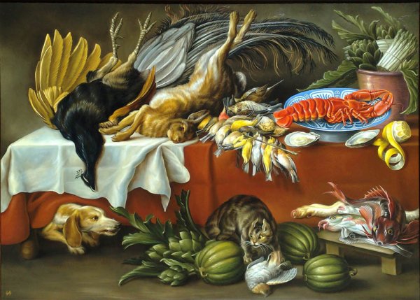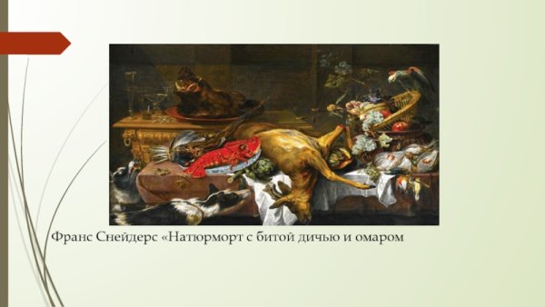 Пауль де Вос – знаменитый художник XVII века, известный своими потрясающими натюрмортами. Одной из его наиболее известных работ является картина "Натюрморт с битой дичью и омаром". Это произведение искренне передает богатство и разнообразие природы, сочетая в себе прекрасное изображение окружающего мира и умелую игру света и тени. Главными элементами композиции являются битая дичь и омар, которые символически представляют изобилие питания и роскошь. Великолепная детализация и реалистичность каждой детали позволяют зрителю почувствовать запах свежих продуктов и насладиться красотой этих моментов вечности. Картина Пауля де Воса воплощает идеал гармонии и изысканности, став настоящим шедевром живописи.