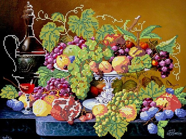 Натюрморт бисером - это уникальное и изысканное художественное произведение, которое захватывает взгляд своей красотой и тонкостью исполнения. Он представляет собой композицию из разнообразных бисерных элементов, создающих впечатление оживших цветов и предметов. Каждая деталь тщательно подобрана и расположена на холсте, чтобы передать гармонию и элегантность. Натюрморт бисером станет прекрасным украшением для интерьера, добавит нотку роскоши и изысканности, а также станет прекрасным подарком для любителей искусства и эстетики.