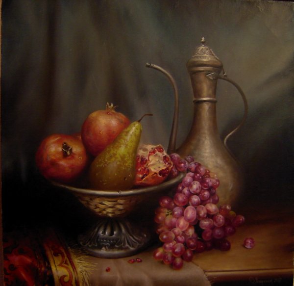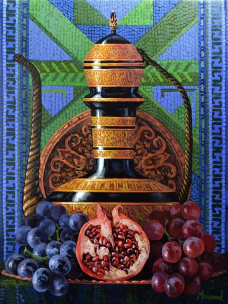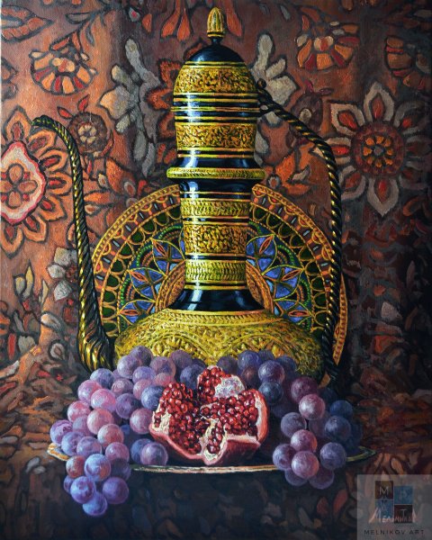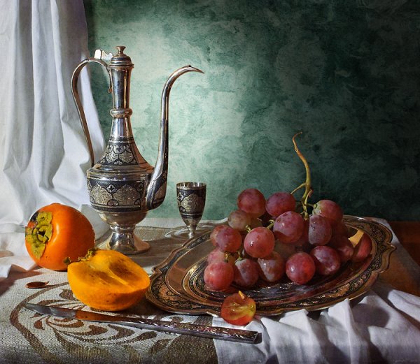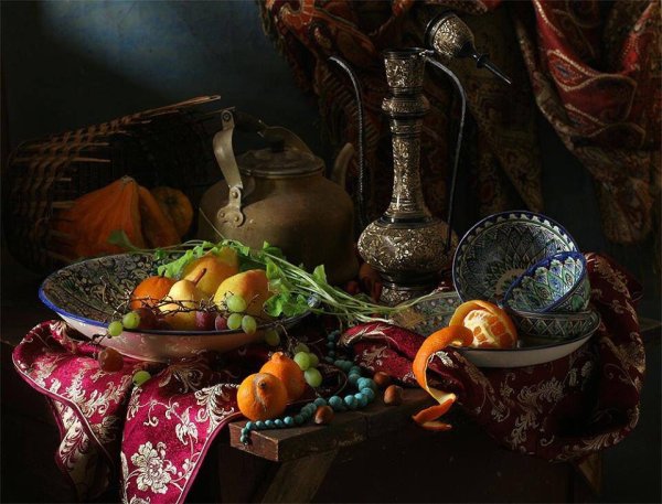 Восточный натюрморт - это уникальное искусство, которое привлекает внимание своей экзотикой и изысканностью. В таком натюрморте можно увидеть великолепные цветы, элегантные вазы, традиционные предметы быта и символы восточной культуры. Каждый элемент этого натюрморта переносит зрителя в мир загадочности и изящества восточных стран. В центре внимания всегда находится гармония и баланс, которые являются характерными чертами восточного искусства. Восточный натюрморт - это способ передать красоту и философию, присущие этой культуре, и погрузиться в мир тайн и эстетического наслаждения.