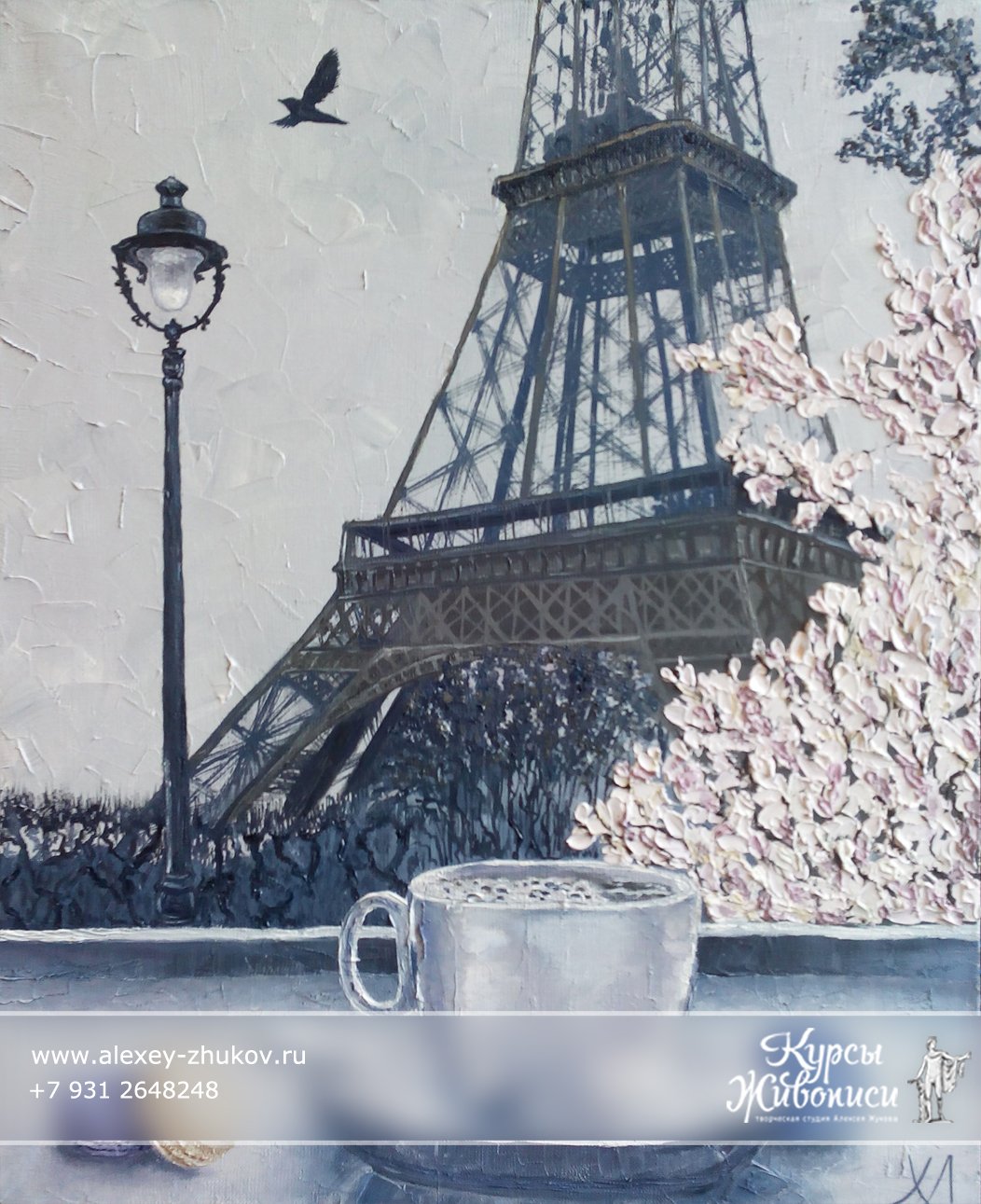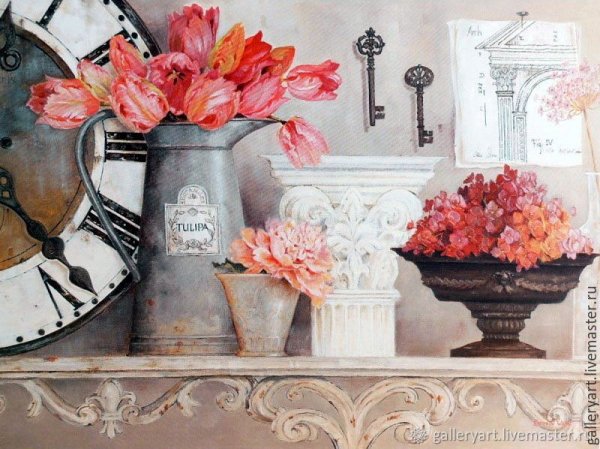 Натюрморт Париж - это образ пленительной гармонии и элегантности. Он захватывает взгляд своей изысканностью и безупречным стилем. В каждой детали этого натюрморта можно увидеть отражение парижской атмосферы - начиная от изысканных цветов и фруктов, расставленных с таким вкусом, до разнообразных предметов и аксессуаров, которые придают этому произведению особую изящность. Натюрморт Париж является воплощением романтики и красоты этого прекрасного города, создавая атмосферу истинного французского шарма.
