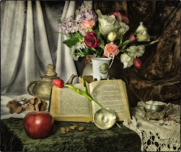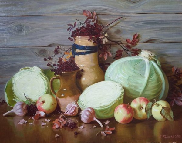 Натюрморт - это жанр изобразительного искусства, в котором художники создают композиции, изображающие неживые предметы, такие как фрукты, цветы, посуда или другие предметы быта. Этот жанр нередко используется для передачи настроения, эстетического удовольствия или просто для восприятия красоты окружающего мира. Натюрморты могут быть выполнены различными техниками и материалами: от масляных красок на холсте до акварели на бумаге. Каждый натюрморт уникален в своем исполнении и может передать характеристики времени, места и даже эмоционального состояния художника. Сочетание цветов, форм и текстур делает натюрморты привлекательными и интересными для зрителей, позволяя им насладиться красотой и гармонией композиции.