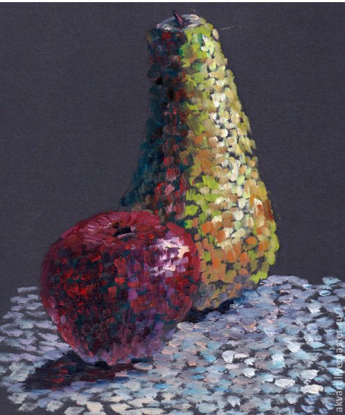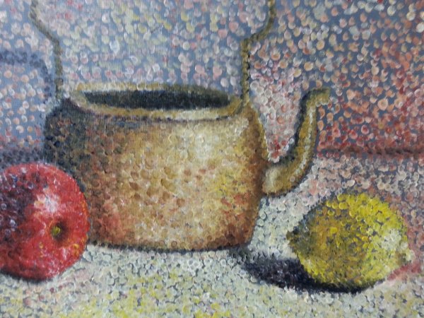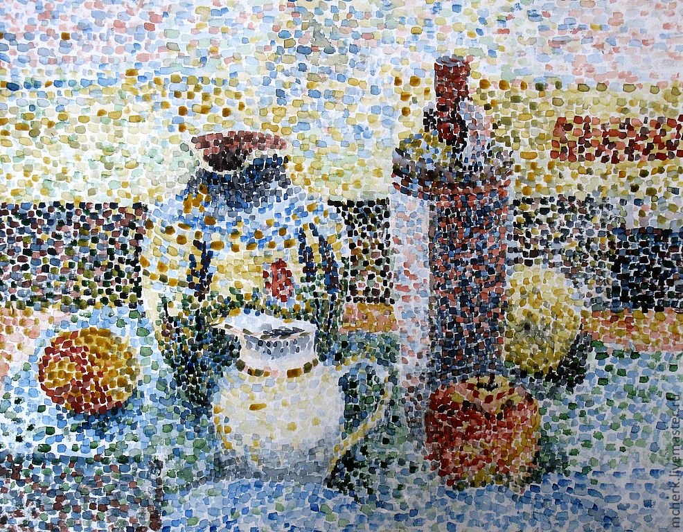 Если вы ищете оригинальное и яркое произведение искусства для своего интерьера, то натюрморт в стиле пуантилизма является прекрасным выбором. Пуантилизм - это художественное направление, разработанное в конце XIX века, которое использует мелкие точки и капли краски, чтобы создать образы с потрясающей детализацией и глубиной. В натюрморте пуантилизма цветы, фрукты или предметы быта изображены с помощью тысяч маленьких точек, которые придают работе особую жизнь и энергию. Каждая точка имеет свою роль в создании образа, и только при ближайшем рассмотрении можно полностью оценить мастерство и техническое умение художника. Натюрморт в стиле пуантилизма добавит вашему интерьеру не только оригинальности, но и чувство радости и живости, привнося в него каплю искусства.