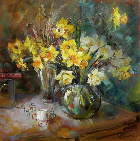 Описание: Мой любимый натюрморт - это великолепное произведение искусства, которое олицетворяет красоту и гармонию природы. На холсте представлены различные цветочные композиции, восхищающие своей яркостью и изяществом. Цветы привлекают внимание благодаря своей реалистичности и детализации, богатству оттенков и игре света. Каждый элемент натюрморта создает атмосферу умиротворения и спокойствия, заставляя нас забыть обо всех заботах и окунуться в мир красоты и эстетики. Это произведение искусства напоминает нам о важности сохранения и ценности природы, а также передает чувство благодарности за ее бесконечное великолепие. Оно станет прекрасным украшением для любого интерьера, подчеркивая его стиль и добавляя нотку изысканности и элегантности. Взглянув на этот натюрморт, мы погружаемся в мир красок, ароматов и гармонии, ощущая себя частичкой природы и наслаждаясь ее великолепием.