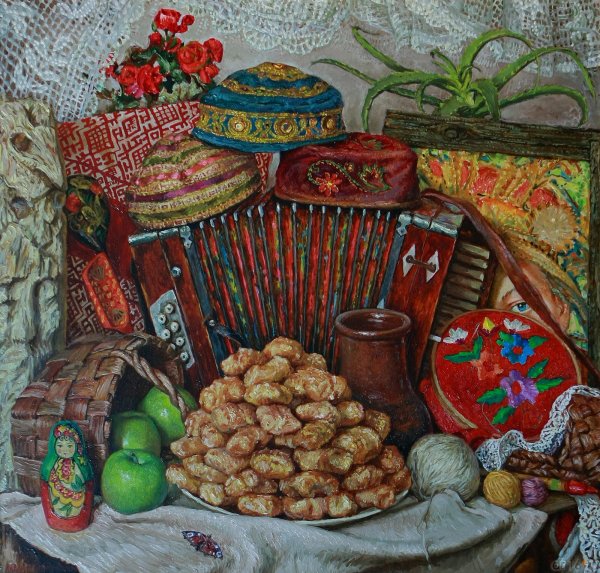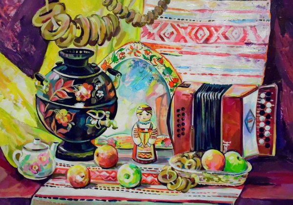Национальный натюрморт - это уникальное произведение искусства, которое отражает культуру и традиции определенной нации. Он является своеобразным портретом национального характера и духа, представленных через разнообразные предметы, символы и элементы, характерные для этой страны. В таком натюрморте можно увидеть прекрасное сочетание цветов, форм и текстур, которые передают аутентичность и живость национального наследия. Каждый элемент в натюрморте имеет особое значение и отражает исторические, социальные или религиозные аспекты культуры. Национальный натюрморт - это не только изображение различных объектов, но и их символическое значение, которое помогает понять и ощутить специфику и уникальность этой нации.