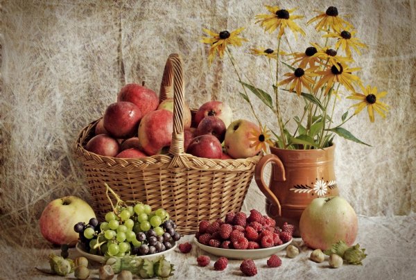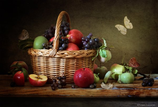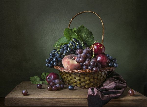 Натюрморт с корзиной фруктов - это изящное и живописное изображение, которое привлекает внимание своей красотой и яркостью. Корзина, наполненная сочными и спелыми фруктами различных видов, создает атмосферу обилия и изобилия. Каждый фрукт в этом натюрморте является уникальным произведением природы, предлагая не только визуальное удовольствие, но и богатый вкус. От сочной зелени до ярких оттенков апельсинов, яблок и груш, эта композиция приносит радость и наслаждение. Натюрморт с корзиной фруктов - это не только прекрасное изображение для декорации вашего интерьера, но и символ богатства, здоровья и природной красоты.