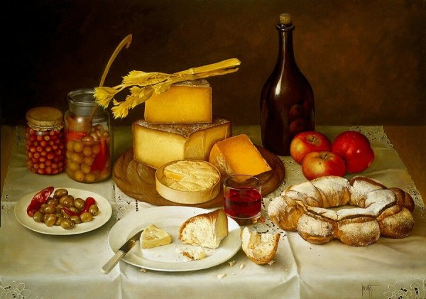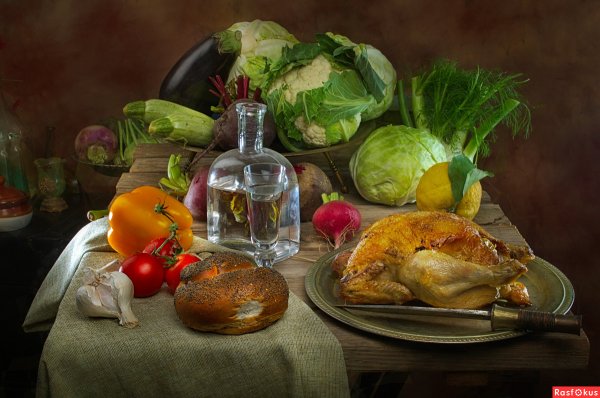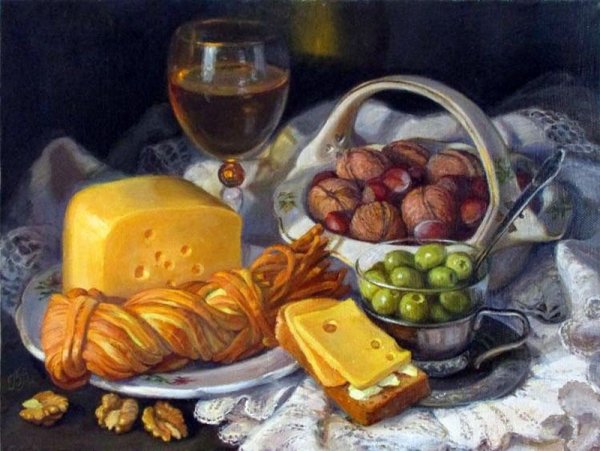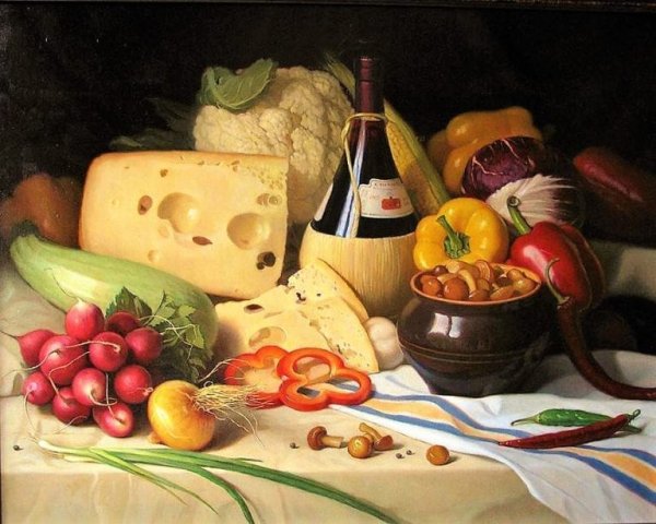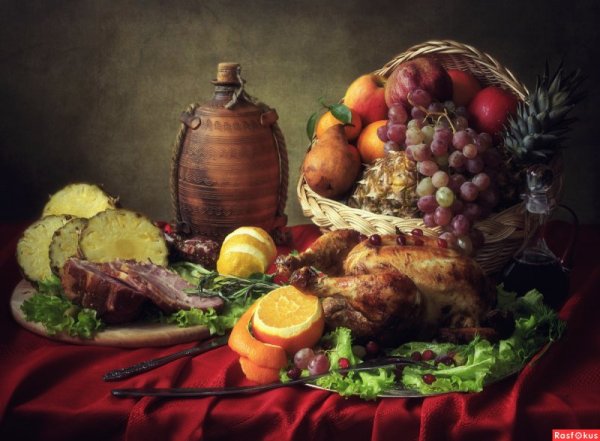 Натюрморт с едой - это искусство, которое захватывает взгляд и пробуждает аппетит. В этом жанре художники создают композиции, где центральным элементом выступает разнообразная пища. Они мастерски расставляют фрукты, овощи, хлеб, морепродукты и другие продукты на столе или подносе, чтобы передать животворящую энергию и красоту еды. Цветовые сочетания, текстуры и световые эффекты используются для создания реалистичных и ярких образов пищи. Натюрморт с едой может быть как классическим, так и современным, но в любом случае он отражает наше восприятие пищи как чего-то прекрасного и изысканного. Эти произведения искусства приятно рассматривать и вызывают в нас чувство гармонии и удовлетворения.