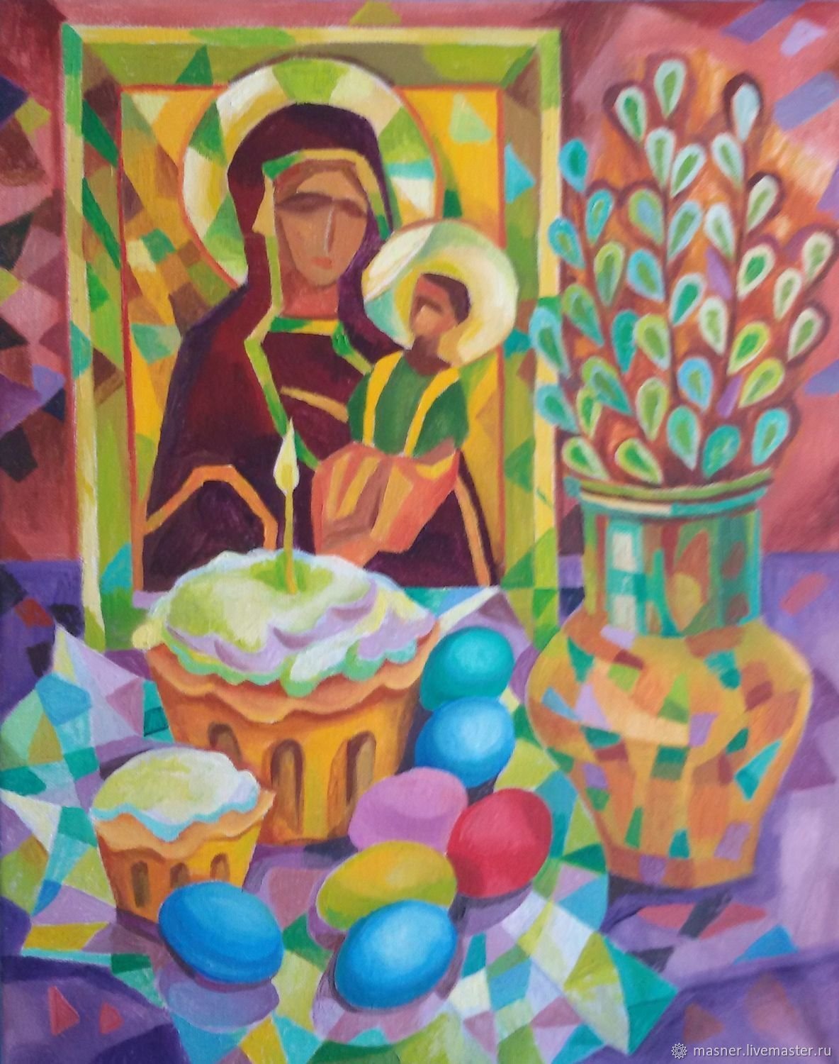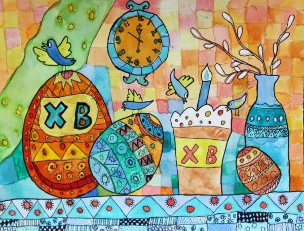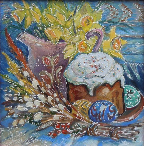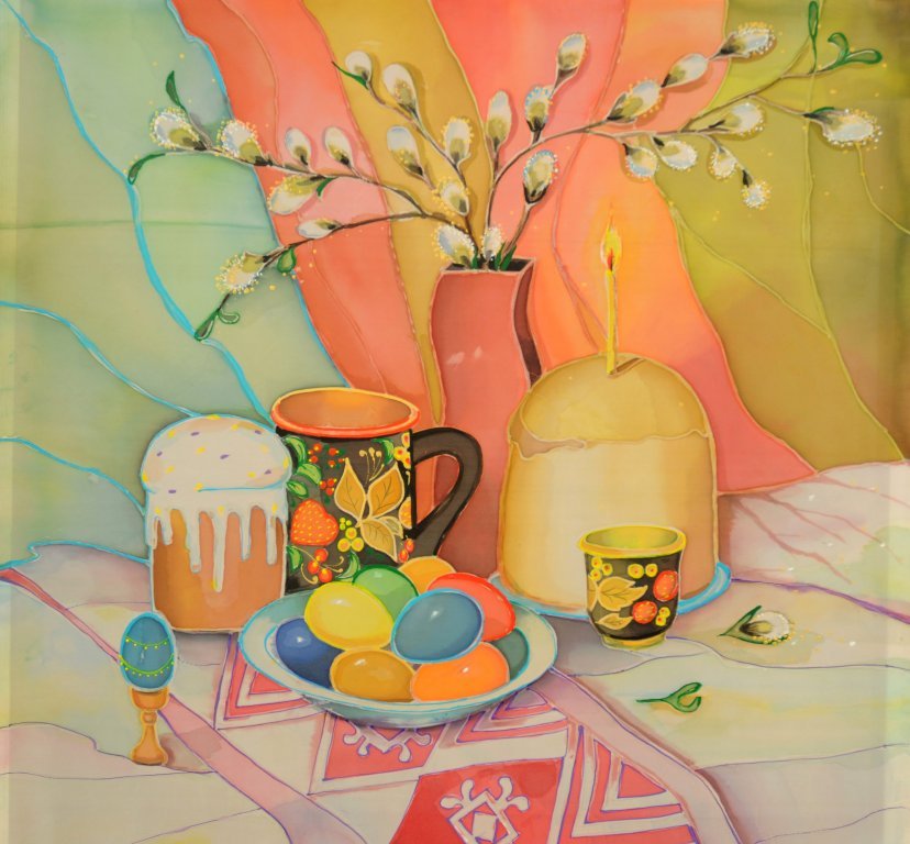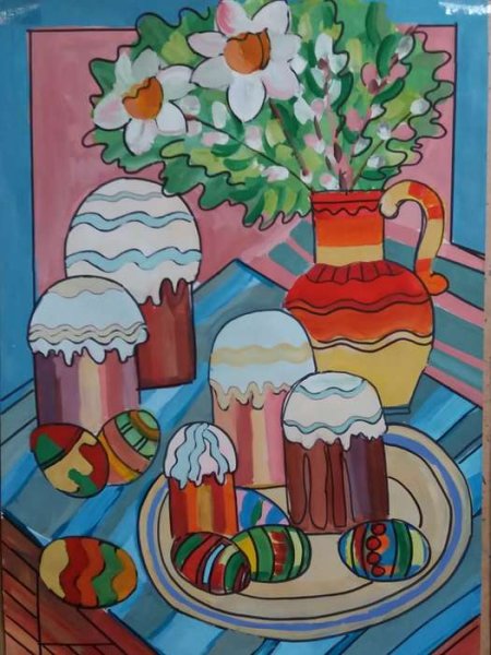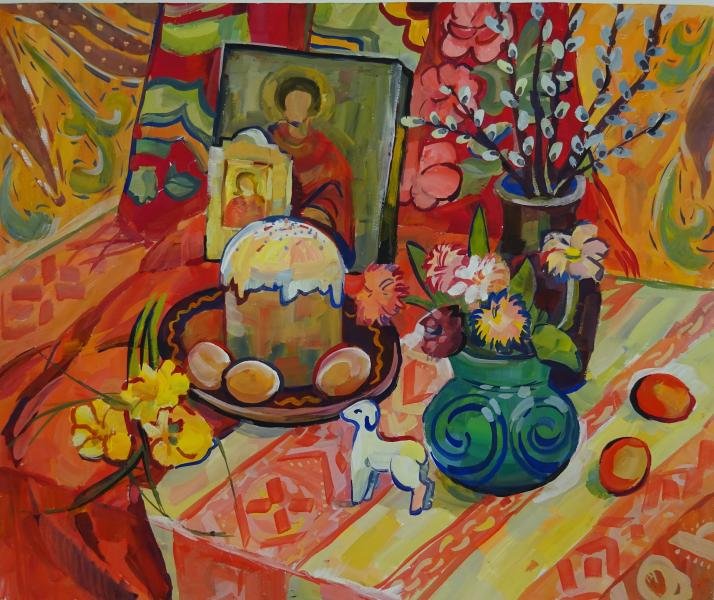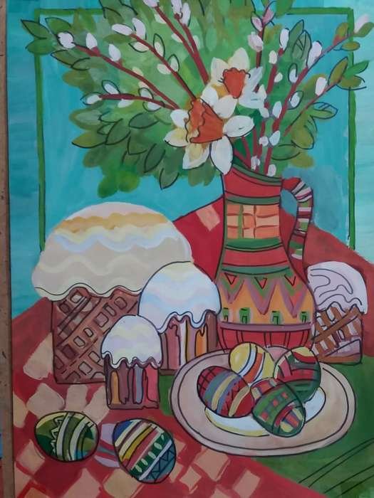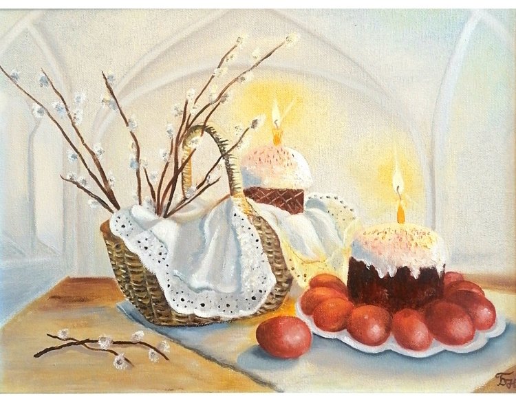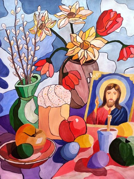 Пасха - это праздник, который ассоциируется с яркими красками, весенним настроением и символикой возрождения. Декоративный натюрморт, созданный специально для этого праздника, помогает передать всю его красоту и значимость. В таком натюрморте могут быть представлены яйца разных размеров и оттенков, цветочные композиции из тюльпанов, нарциссов или других весенних цветов, а также дополнительные элементы декора, такие как пасхальные куличи, зайчики или украшения из лент и цветной бумаги. Каждый элемент натюрморта подобран с особым вниманием к деталям, чтобы создать атмосферу праздника и радости. Такой декоративный натюрморт станет прекрасным украшением для пасхального стола, дома или офиса, а также станет отличным подарком для близких и друзей, чтобы подарить им частичку весеннего настроения и радости праздника Пасхи.