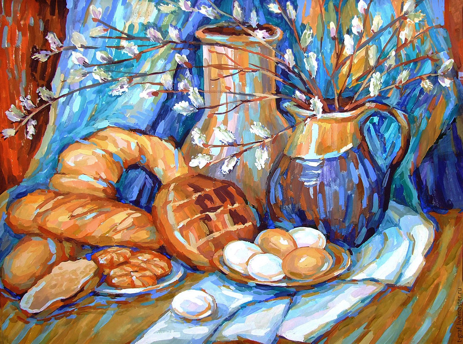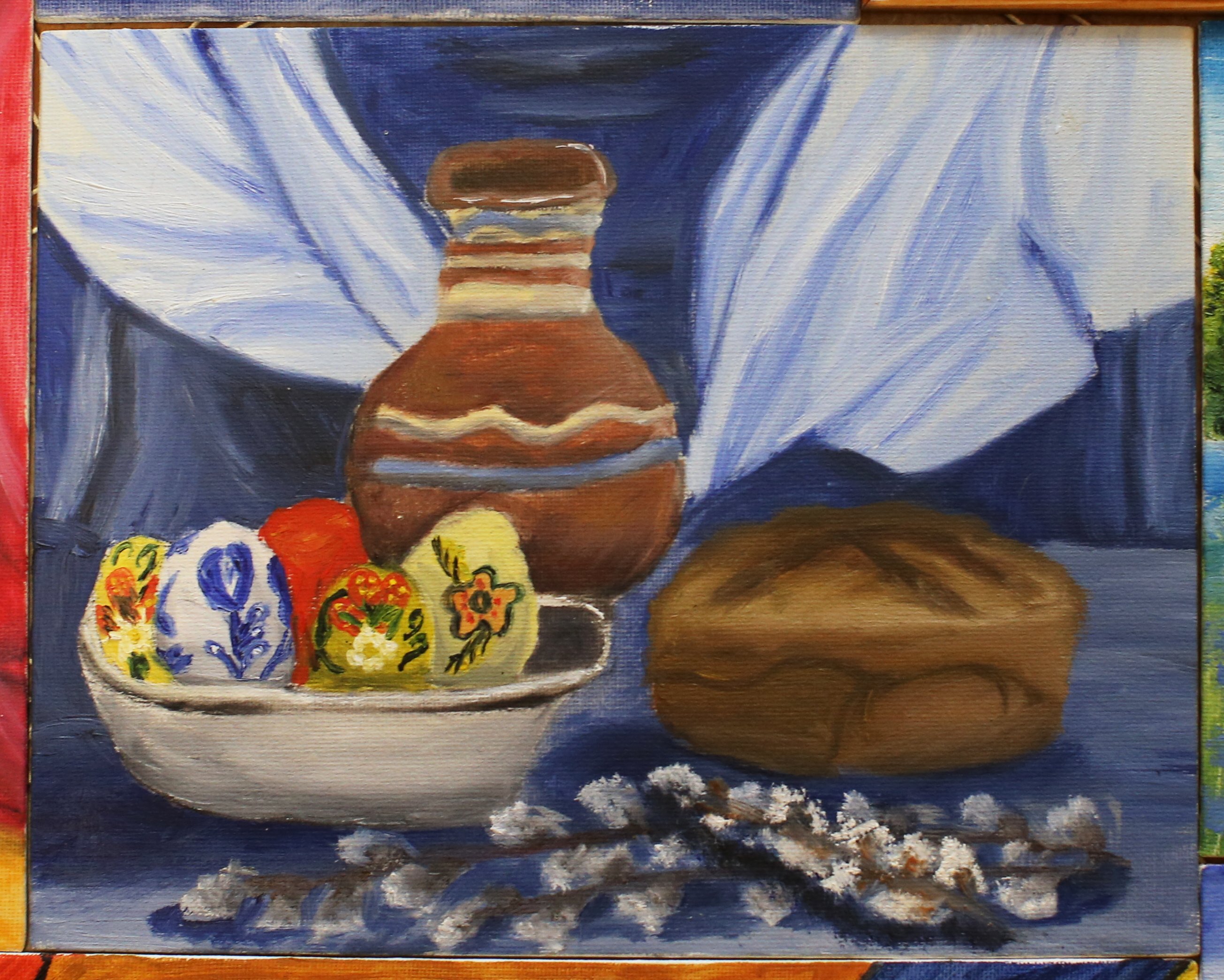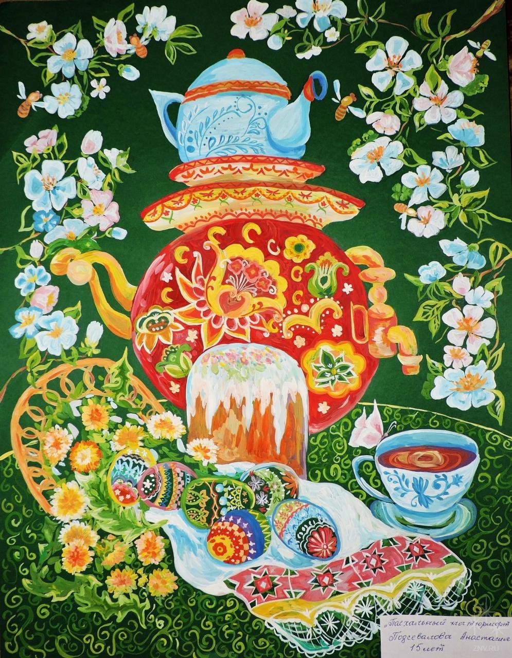 Пасха - это праздник, который ассоциируется с яркими красками, весенним настроением и символикой возрождения. Декоративный натюрморт, созданный специально для этого праздника, помогает передать всю его красоту и значимость. В таком натюрморте могут быть представлены яйца разных размеров и оттенков, цветочные композиции из тюльпанов, нарциссов или других весенних цветов, а также дополнительные элементы декора, такие как пасхальные куличи, зайчики или украшения из лент и цветной бумаги. Каждый элемент натюрморта подобран с особым вниманием к деталям, чтобы создать атмосферу праздника и радости. Такой декоративный натюрморт станет прекрасным украшением для пасхального стола, дома или офиса, а также станет отличным подарком для близких и друзей, чтобы подарить им частичку весеннего настроения и радости праздника Пасхи.