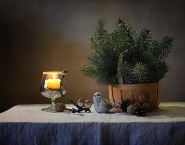 Натюрморт "Зима" - это удивительная композиция, которая переносит нас в мир заснеженного пейзажа и холодных зимних дней. В этой работе ощущается атмосфера тишины и спокойствия, характерная для зимы. Палитра цветов состоит из оттенков белого, синего и серого, что передает холодность и свежесть снега. В центре натюрморта расположены замерзшие ветки деревьев, покрытые легким снегом, а на заднем плане виднеются заснеженные холмы и далекие еловые леса. Комбинация деталей и игра света создают реалистичное и живописное представление зимы, запечатленной на полотне. Этот натюрморт является отличным выбором для тех, кто ценит природу и хочет привнести в свой интерьер немного зимнего очарования.