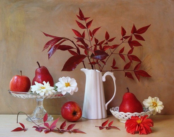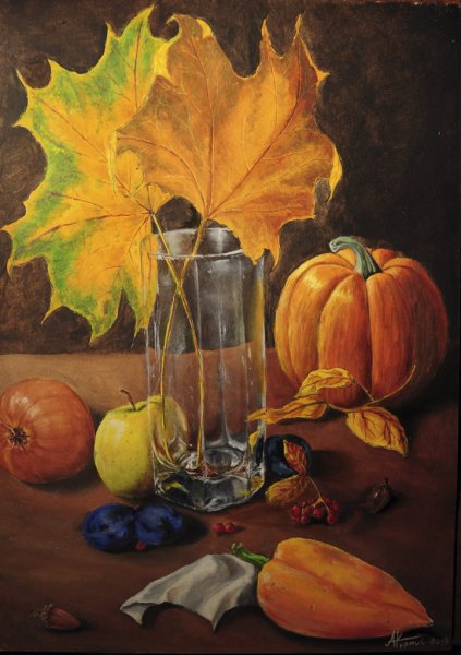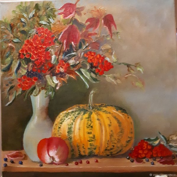Наш натюрморт на осеннюю тему – это истинное произведение искусства, которое перенесет вас в удивительный мир осенних красок и настроения. Каждый элемент нашего натюрморта тщательно подобран, чтобы передать всю прелесть и магию осени. Золотистые листья, падающие с деревьев, создают особую атмосферу тепла и уюта. Яркие оранжевые тыквы добавляют яркости и жизненности. Свежие яблоки и груши наполняют воздух ароматом фруктового сезона. Ветви сухих растений придают композиции легкость и изящество. Наш натюрморт на осеннюю тему – это идеальное дополнение для интерьера, которое подарит вам частичку октябрьского очарования прямо у вас дома.