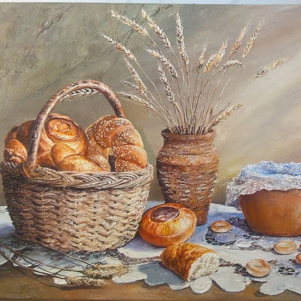 Наш натюрморт на тему хлеба - это искусство, которое заставляет вас почувствовать аромат свежеиспеченного хлеба и ощутить его утонченный вкус. Каждая деталь этого произведения искусства проникнута энергией и лаской природы. Очаровательные пшеничные колосья и золотистые хлебные буханки располагаются на старинном деревянном столе, создавая ощущение тепла и комфорта. Этот натюрморт олицетворяет не только основу нашей питательной пищи, но и символизирует изобилие, обещание новых начал и единение семьи за обеденным столом. Это произведение искусства является идеальным выбором для декорирования вашего кухонного или столового пространства, подчеркивая значимость хлеба в нашей жизни и наполняя его особым шармом и эмоциональной глубиной.