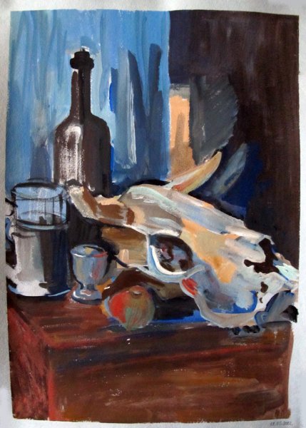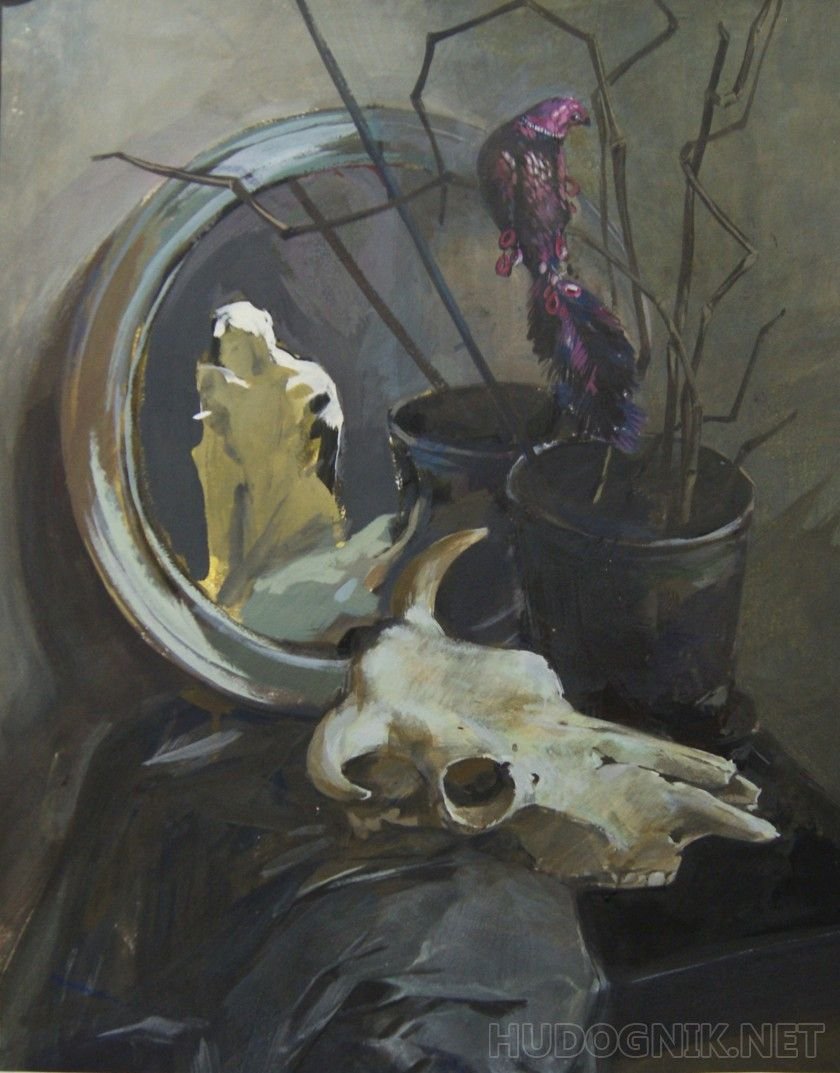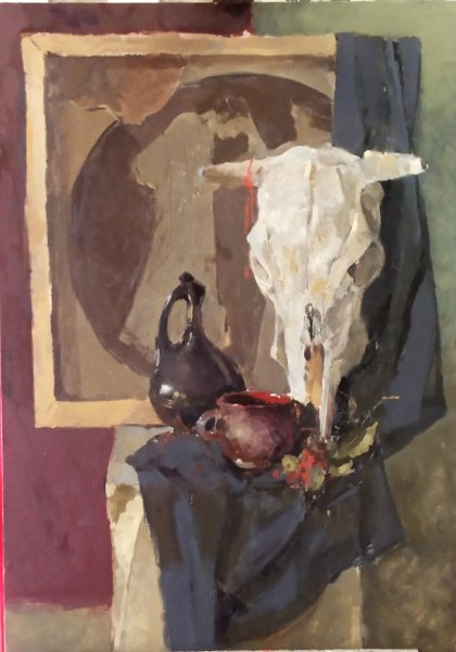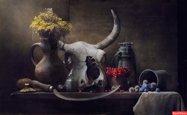 Натюрморт с бычьим черепом — это интригующая и загадочная композиция, которая притягивает взгляды и вызывает множество вопросов. Основной элемент этого произведения искусства является череп быка, который символизирует силу и смерть. Вокруг него расположены различные объекты, такие как цветы, фрукты или предметы быта, создавая интересный контраст между жизнью и смертью. Каждый элемент внимательно подобран и расположен с учетом цветовых сочетаний и композиционной гармонии, чтобы передать определенное настроение и эмоции. Натюрморт с бычьим черепом может быть интерпретирован по-разному каждым зрителем, вызывая его собственные мысли и чувства. Это произведение искусства не только декоративно, но и философски глубоко, напоминая нам о бренности жизни и вечном круговороте времени.