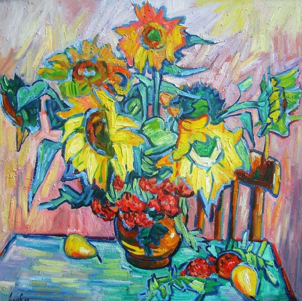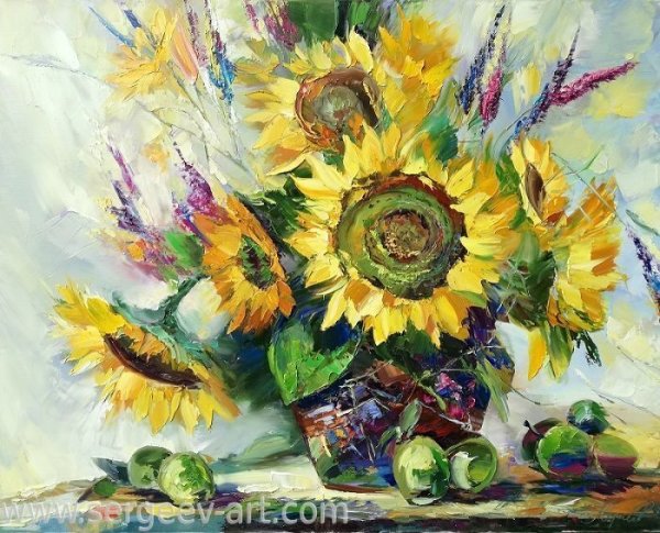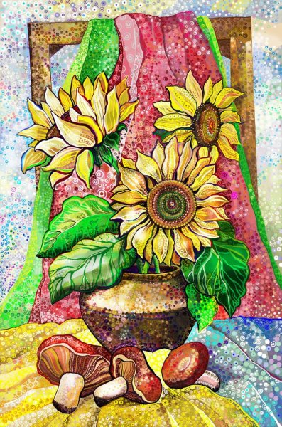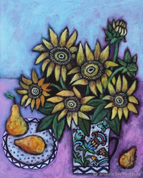 Оживите ваш интерьер с помощью этого прекрасного декоративного натюрморта с подсолнухами. Благодаря ярким и сочным цветам подсолнухов, этот художественный элемент станет настоящим центром внимания в любом помещении. Выполненный с большой тщательностью и оригинальностью, натюрморт порадует глаз своей реалистичностью и привнесет в вашу обстановку чувство природы и свежести. Идеально подходит для украшения гостиной, кухни или спальни. Этот декоративный натюрморт с подсолнухами — отличный выбор, чтобы добавить живую красоту и элегантность в вашу жизнь.