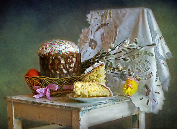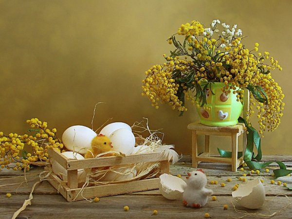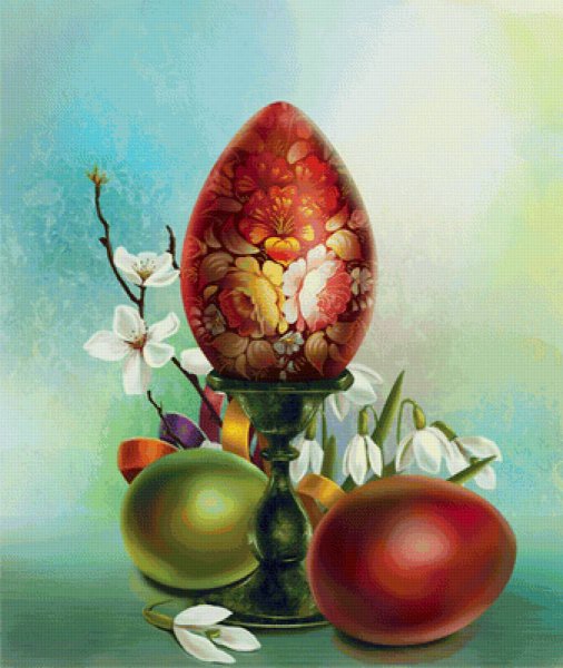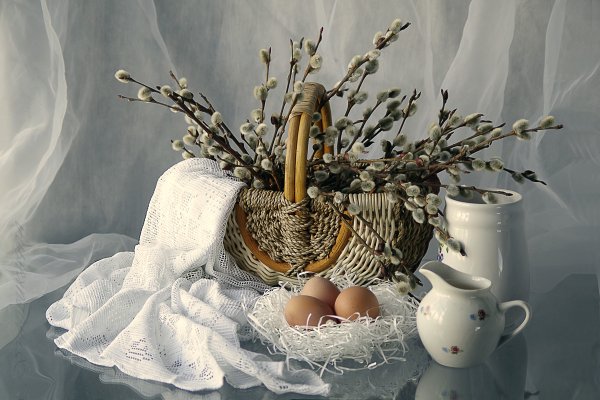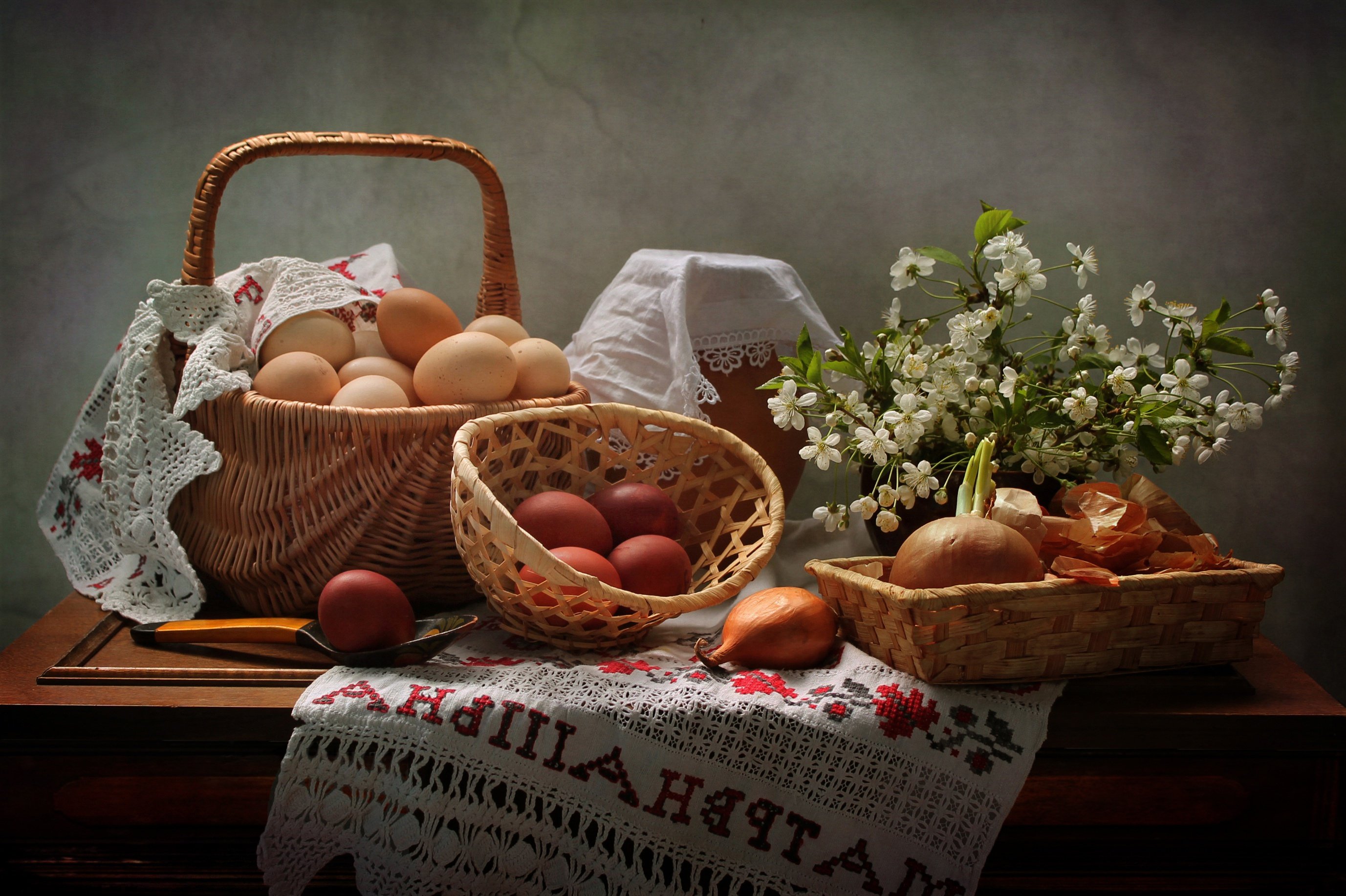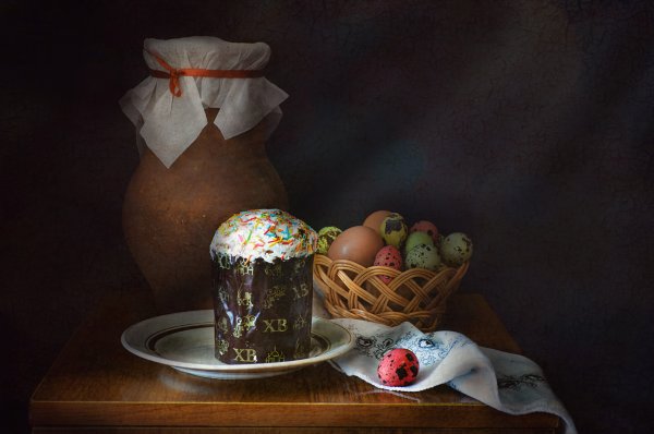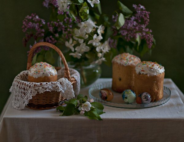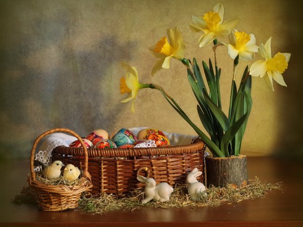 Пасхальный натюрморт - это великолепная композиция из ярких и символичных элементов, которая создает атмосферу праздника и радости. В центре внимания находится красочное пасхальное яйцо, украшенное замысловатыми узорами и рисунками. Оно символизирует новую жизнь, возрождение и надежду. Вокруг яйца расположены свежие цветы, веточки и зелень, придающие композиции естественность и живость. Также необходимым элементом пасхального натюрморта являются разнообразные пасхальные аксессуары - куличи, блины, курица, зайчики и другие символы этого прекрасного праздника. Благодаря тщательно подобранным деталям и гармоничному сочетанию цветов, пасхальный натюрморт становится настоящим украшением интерьера и напоминает о важности семейных традиций и душевной связи.