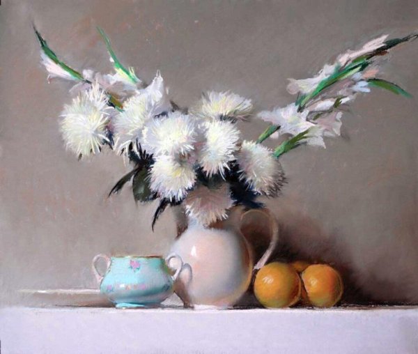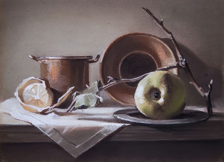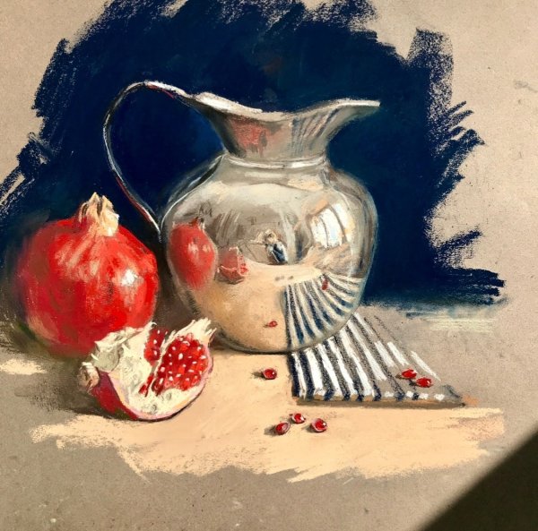 Натюрморт с использованием пастели находится на стыке живописи и рисования. Он создается с использованием пастельных красок, которые состоят из порошка пигментов, связывающих веществ и различных добавок. Этот материал позволяет художнику передать яркие цвета и мягкость переходов, что придает натюрморту особую выразительность. Сухая пастель используется для создания текстурных эффектов и игры света и тени, что позволяет оживить и придать объем объектам на картине. Композиция сухой пастелью может включать различные предметы, такие как фрукты, цветы, посуда или животные, и каждый элемент выбирается с учетом его цветового сочетания и формы. Этот вид натюрморта привлекает внимание своей эстетической привлекательностью и способностью передать атмосферу и настроение.