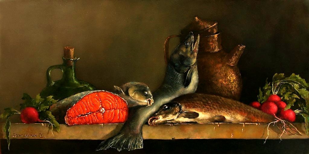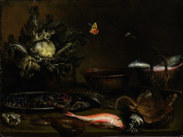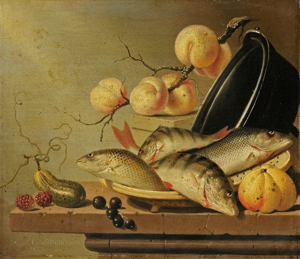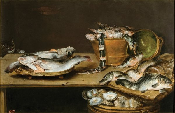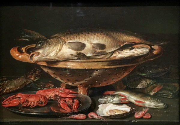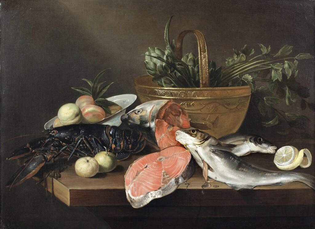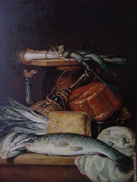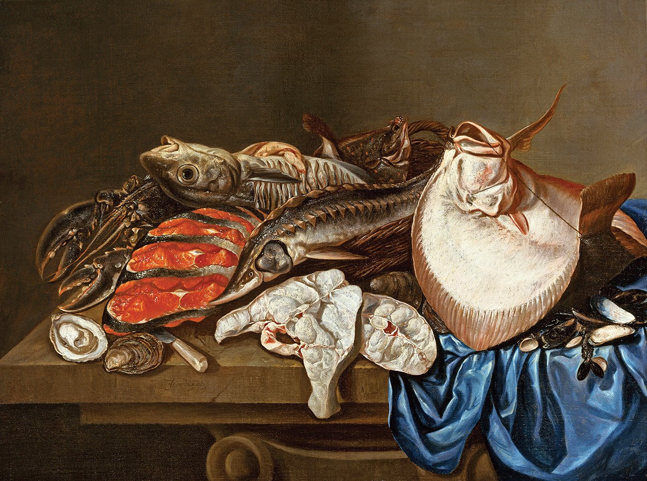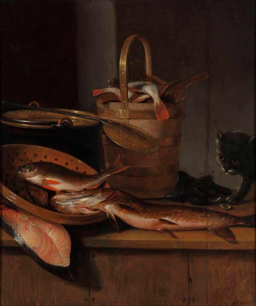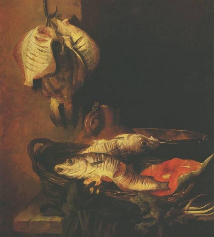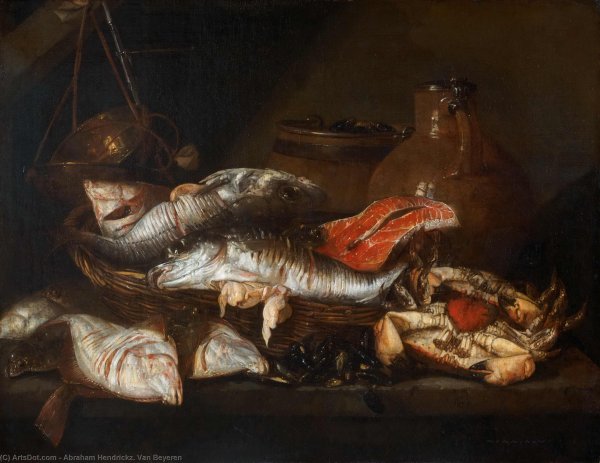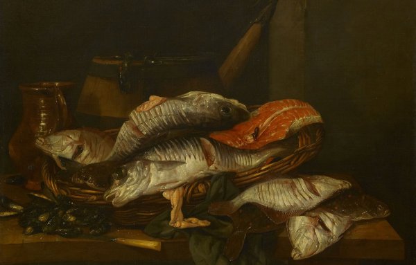 Натюрморт с рыбой является классическим жанром в голландской живописи, который представляет изображение различных видов рыбы, расположенной на столе или подвешенной на крюках. Этот жанр был особенно популярным в 17 веке и часто использовался для демонстрации богатства и процветания голландских рыболовецких сообществ. Картины такого типа отличаются высоким уровнем детализации и мастерским исполнением, которые позволяют наблюдателю почувствовать атмосферу моря и оценить разнообразие рыбных видов, представленных на работе. Они также служат напоминанием о значимости рыболовства и его экономической важности для Голландии в ту эпоху.